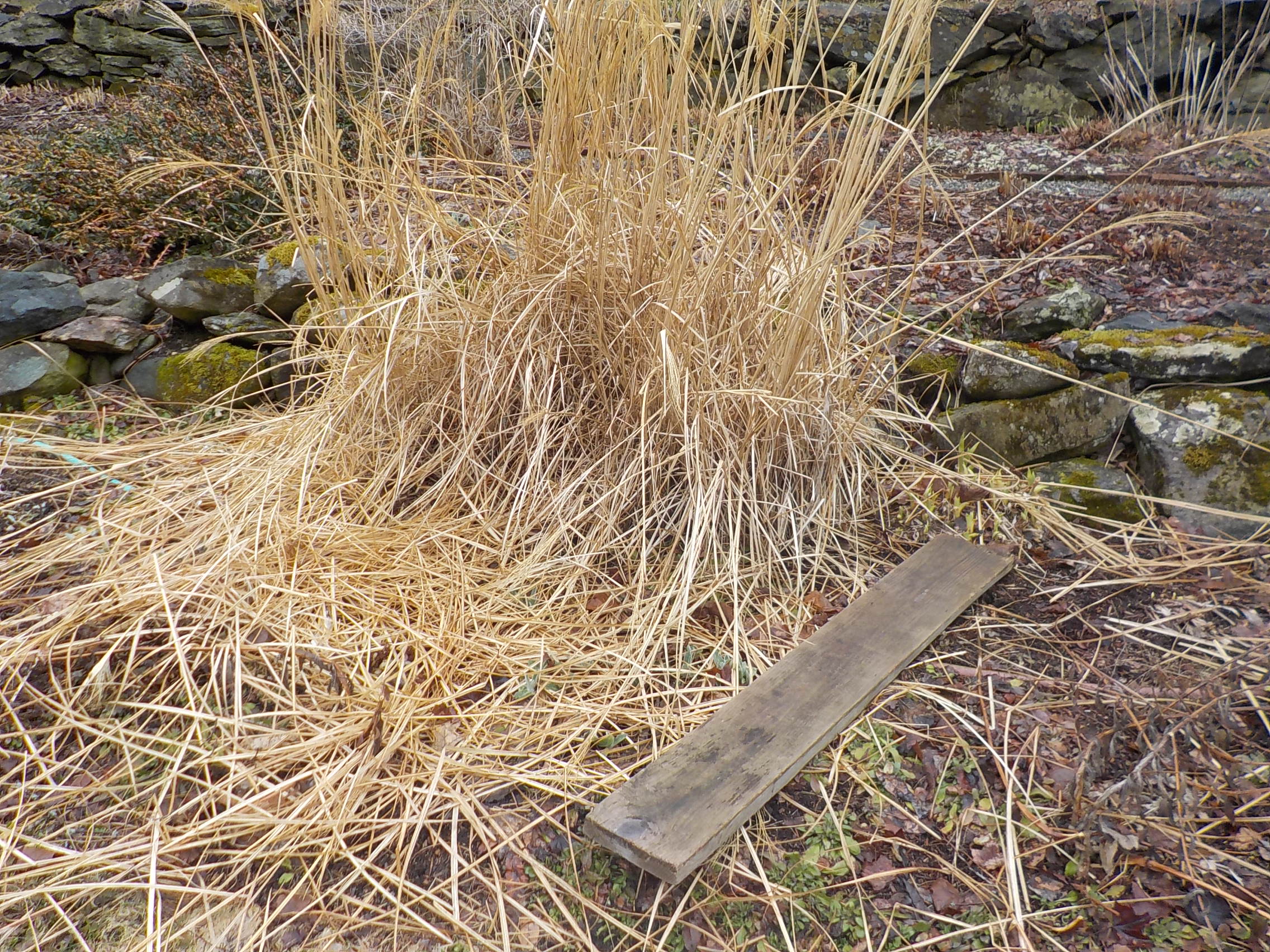 Filling in empty spots can be done in May by scratching the soil with a short-tined rake to loosen the surface. Add half an inch of compost and mix it in with the soil. Then spread seed over it – just broadcast it with your hand in small areas. I use a lawn/leaf rake to mix the seed in with the soil: I flip over the rake and drag it lightly over the area, which mixes in the seed well. If you have a metal tamper, use it to press down the planted area. If not, use a small board and step on it.