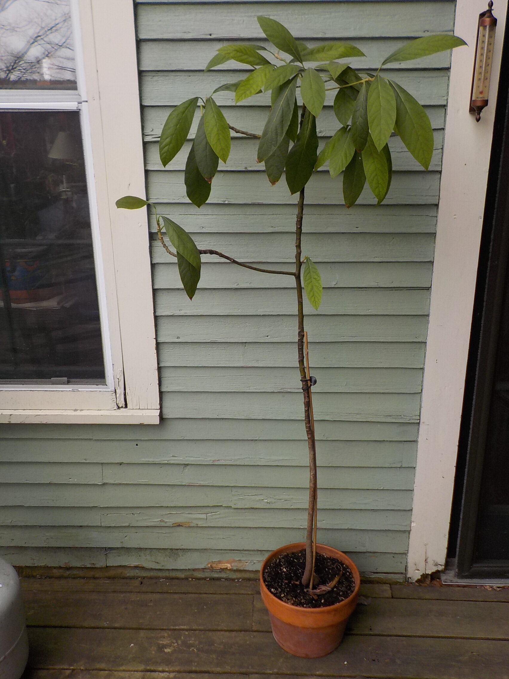 Any easy project indoors would be to start an avocado tree. Avocados ripen in California starting in spring and going through summer. Winter avocados won’t usually sprout from their seeds – they have been in cold storage too long. The classic method it to perch a seed in a glass of water using 3 toothpicks to keep its bottom just kissing the water. Put the point end up and the fat end down. I cut one open recently, and it was already sprouting! So I planted it in a mixture of potting soil and compost. I let the sprout just peak out above the soil line.