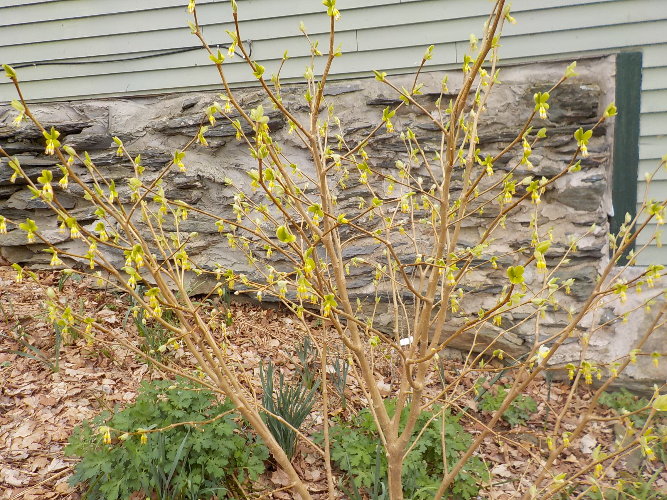 Let’s start with trees and shrubs – what I call woodies. The most unusual woody is leatherwood (Dirca palustris). This is a native woodland plant that does well in part shade. Although the literature says it prefers moist, rich soil, I have it in dry soil and it does well there.