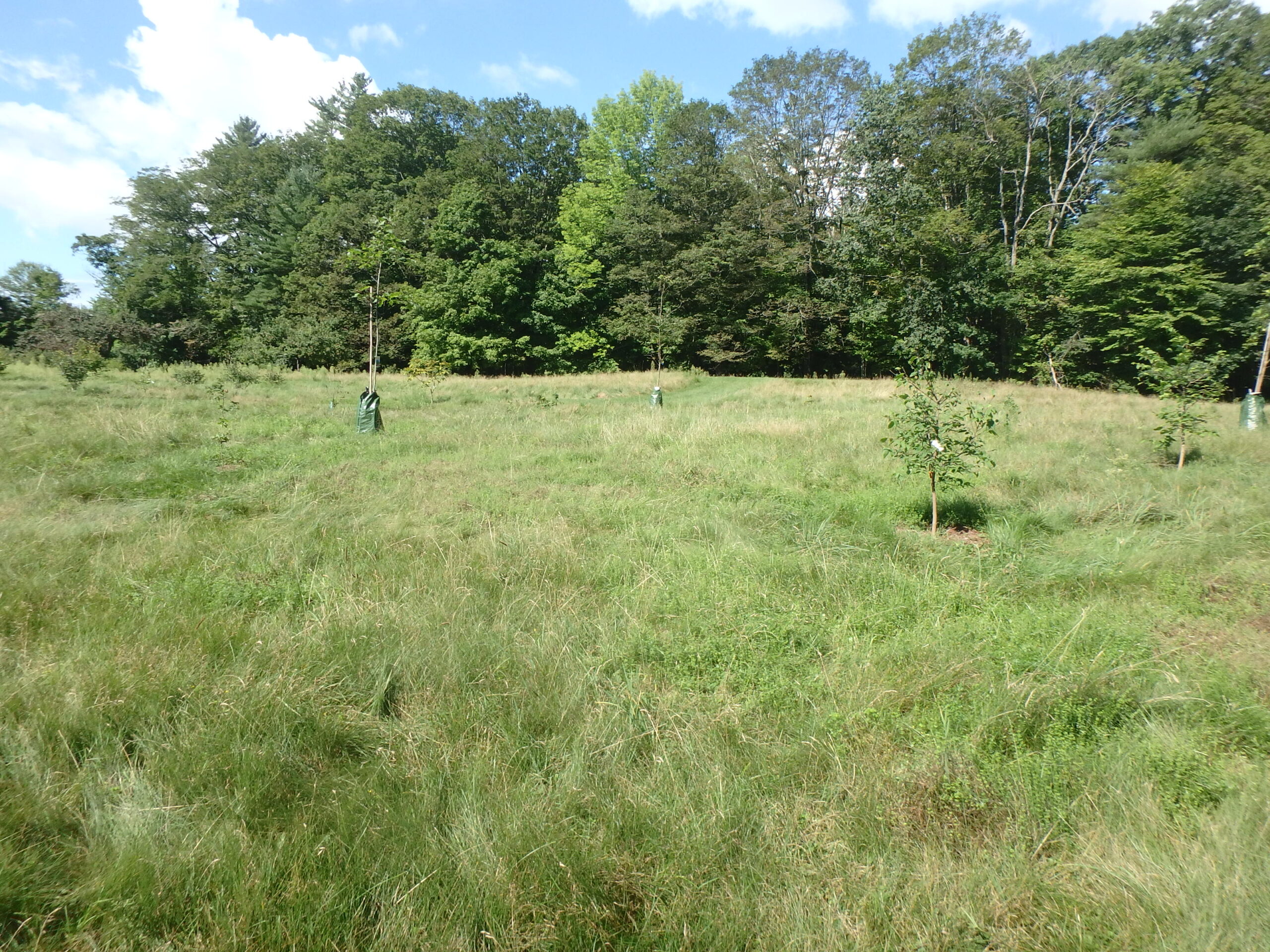 For the last two years I have been installing trees in what was a 5-acre lawn in Hanover, NH. So far we have planted about 150 of them – and we largely stopped the mowing, just leaving pathways throughout. The owners now have their field mowed everywhere just once every two years to control growth of unwanted woody plants like poplars, which spread by root.