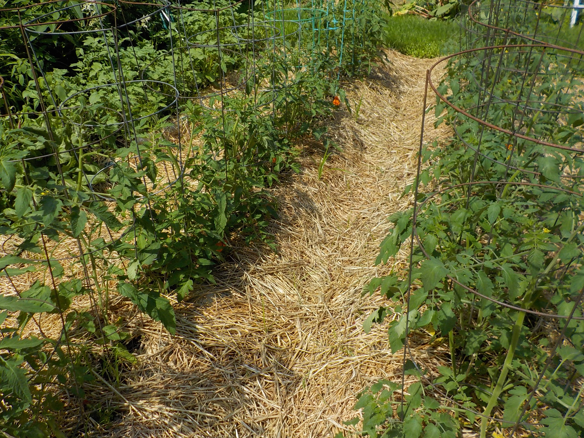 Even though I have been picking off the many yellowed leaves on my tomato plants, they are still far behind their usual selves. Do pick off the yellow leaves – they will only spread fungal disease. But only do so when the leaves are dry – if they ever are!