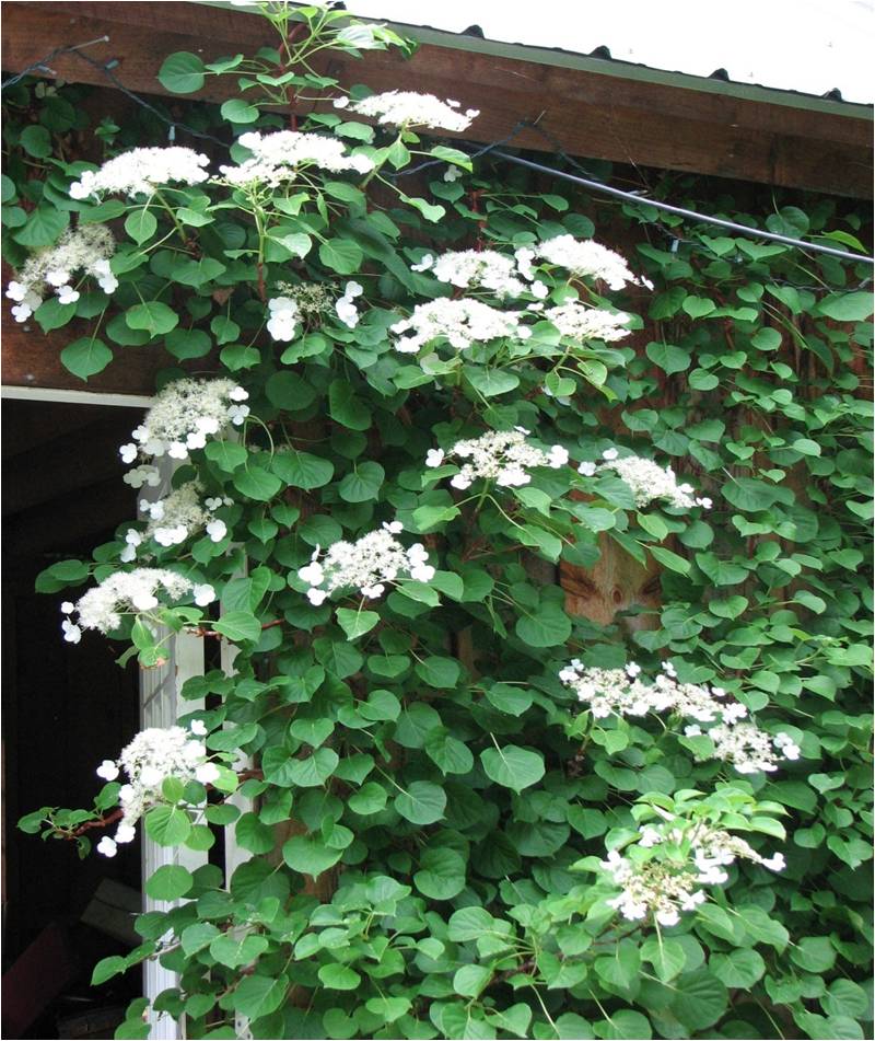 There is one native hydrangea, called smooth hydrangea (Hydrangea arborescens). It stays small, only 3-to 6-feet tall and wide. It does well in partial shade, but is intolerant of dry soils. It will tolerate full sun only if the soil stays moist. ‘Annabelle’ is commonly sold in the nursery trade but I can’t imagine why. Yes, it does have huge panicles, but it has flimsy stems so the panicles droop or flop onto the ground.