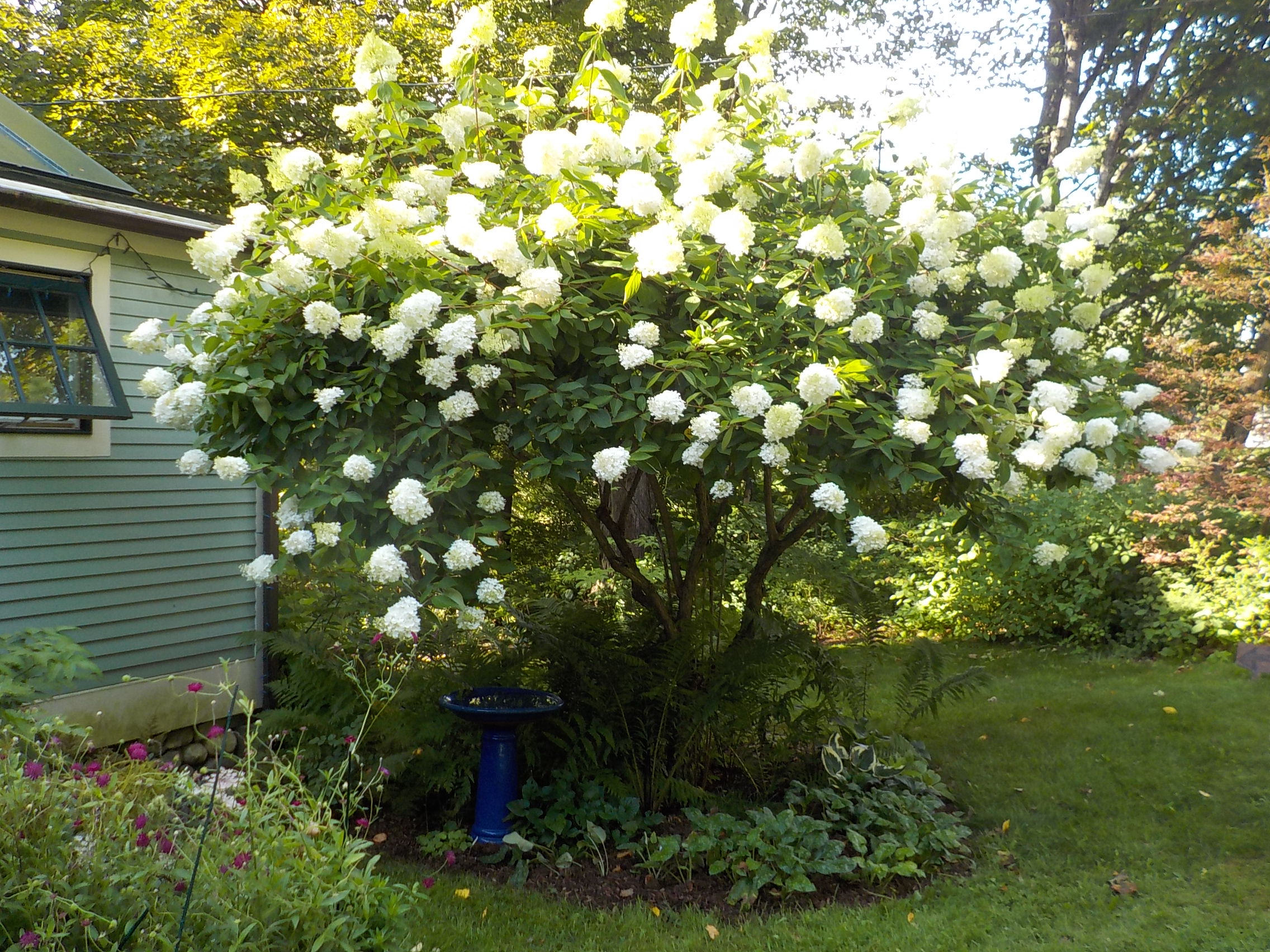 If you want a tall plant with instant curb appeal, buy what is called a hydrangea “standard”. A standard is a shrub that has been grafted onto a tall stem, usually about 5-feet tall. Hydrangeas start out low and often wide, but if you get a standard, you get something that looks a bit like a lollipop – or an instant small tree.