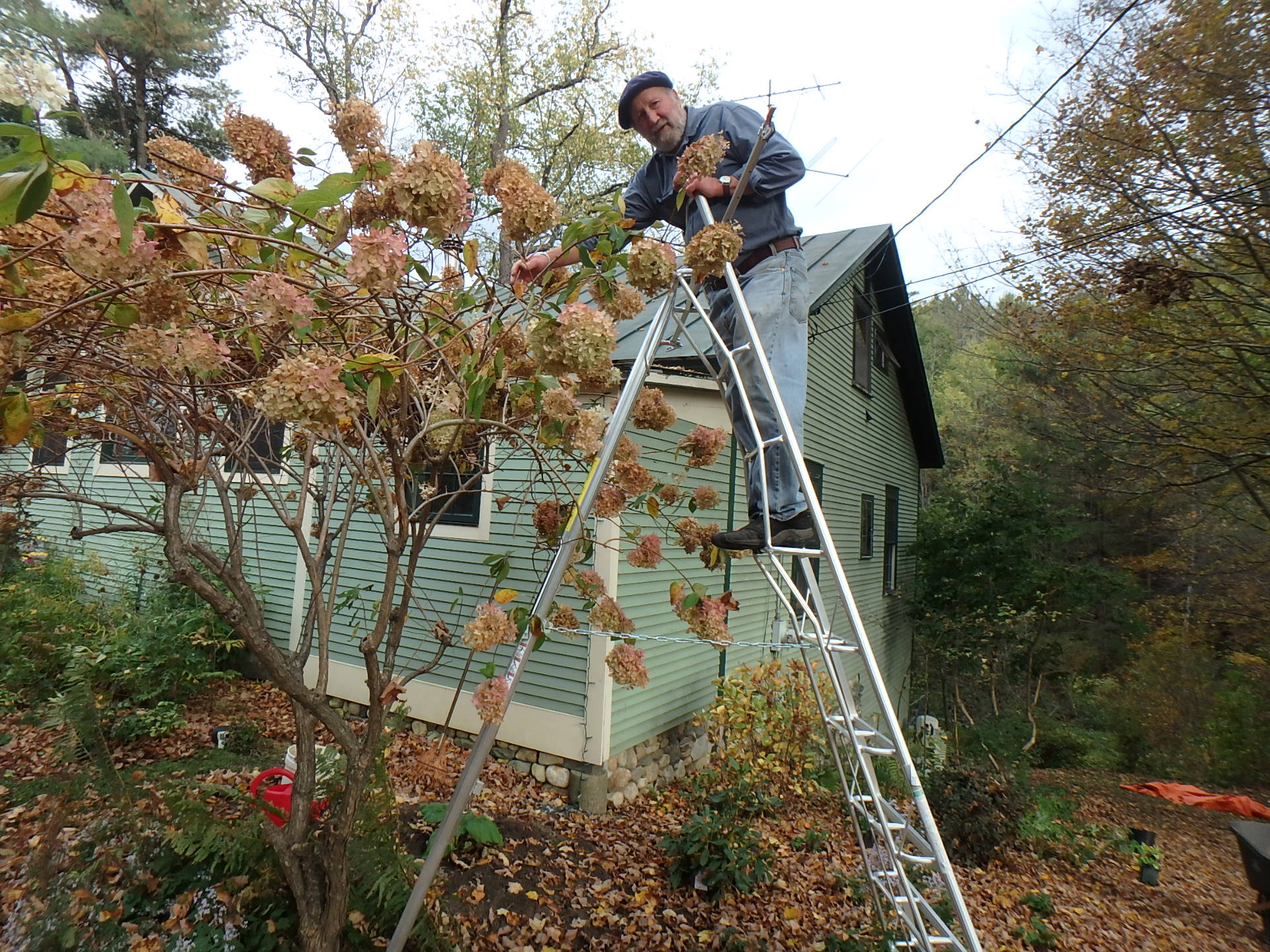 And I sent Daffy off with diamonds. ‘Pink Diamond’, that is. It’s a lovely variety of Hydrangea paniculata. I bought one that is a “standard”, meaning that it came with a straight trunk that had branches grafted on at the 4-foot high level. So it started out as a shrub with some height, and never suffered from the awkwardness common to many hydrangeas that start as multi-stemmed shrubs.
