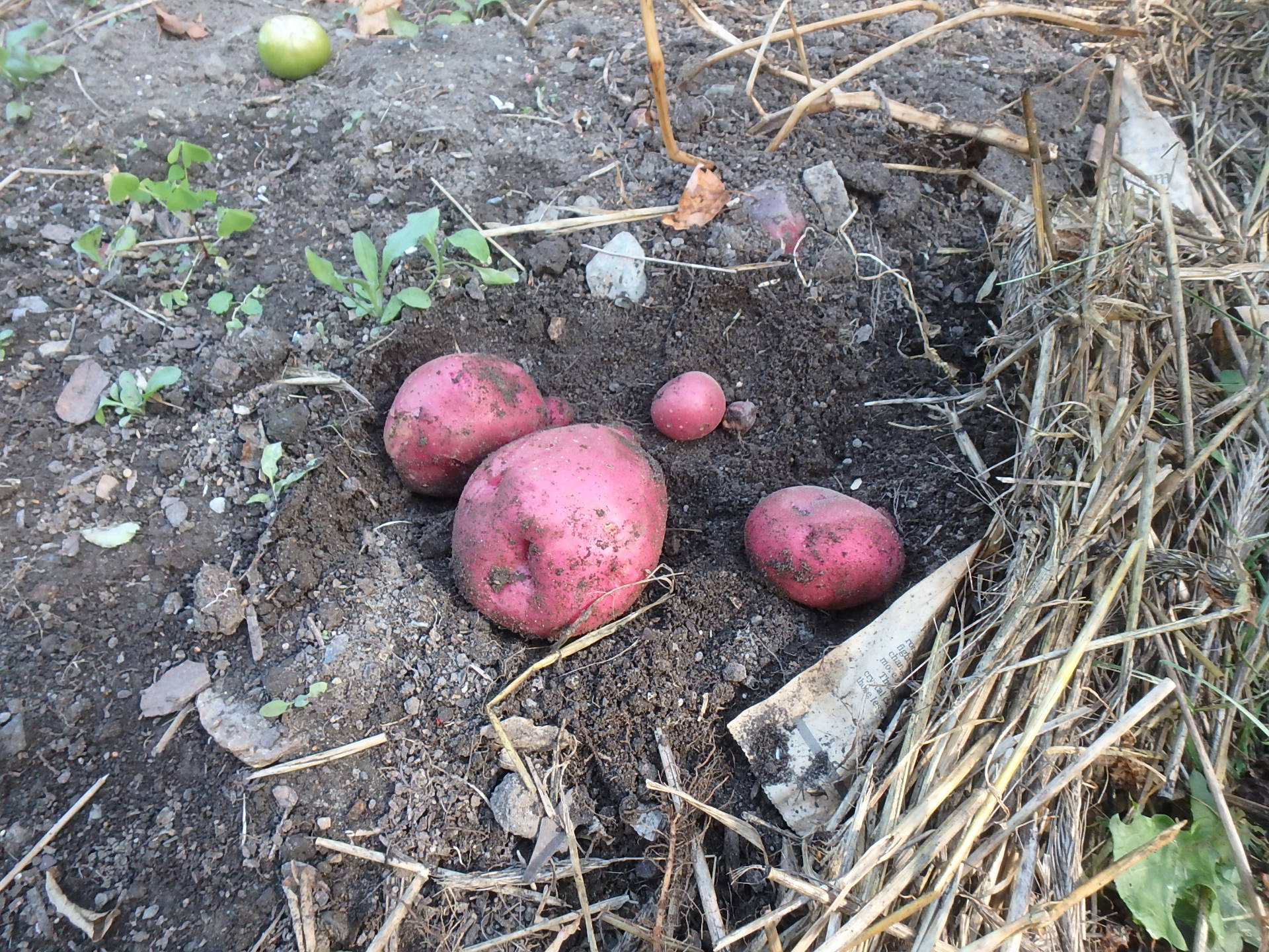 I haven’t harvested potatoes yet. I plant mine in June to avoid potato beetles. Didn’t have a single one this year! But it also means my potatoes are still growing now and are not ready to harvest. I have “stolen” a few by reaching under a plant and grabbing a few but not disrupting the others.