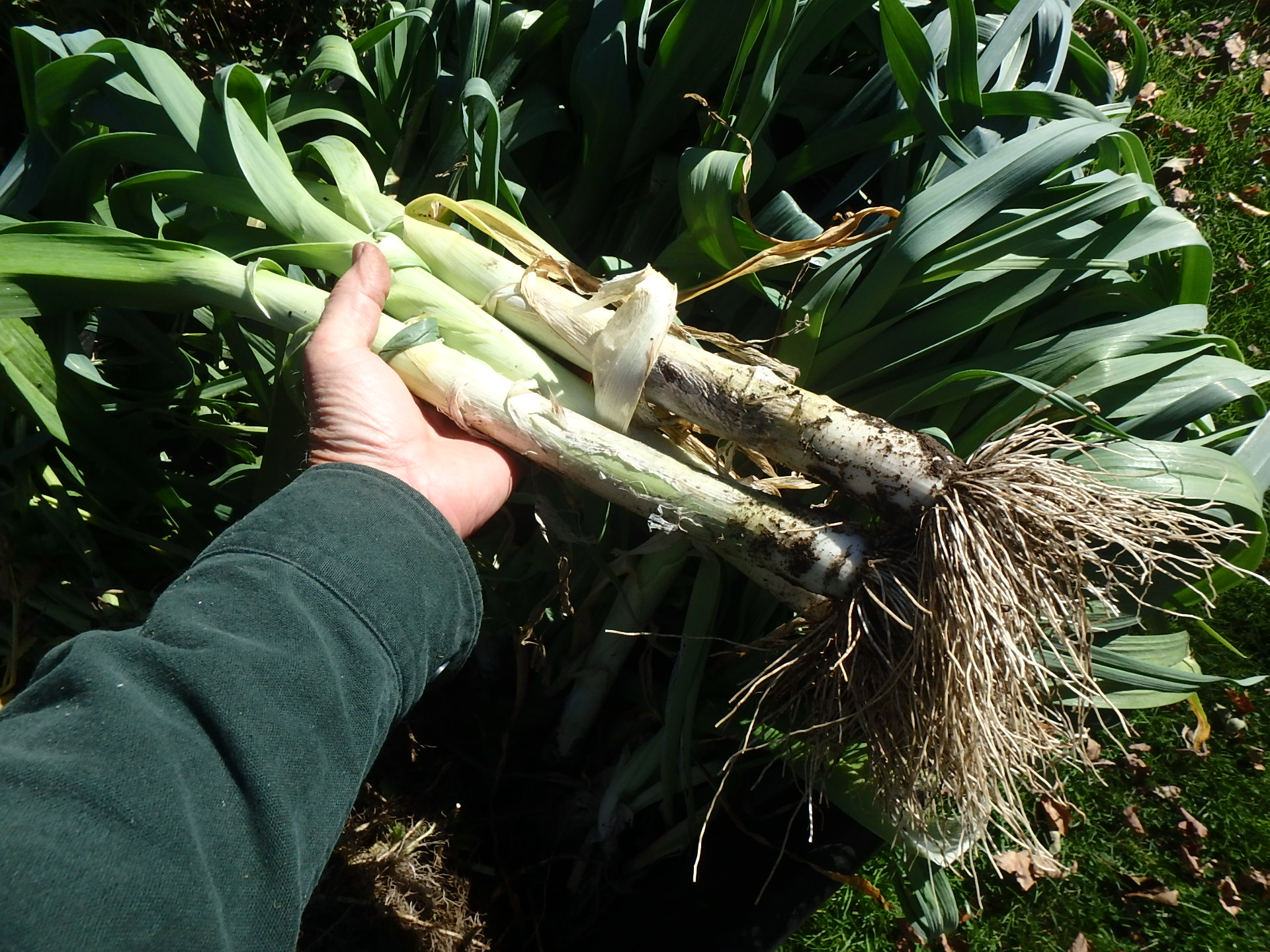 I grow a lot of leeks, in part because they freeze so well. I wash them, take off a layer or so of outer leaves, cut off the tops and quarter them lengthwise. I chop them, put them in freezer bags and suck out the air. They last forever in the freezer. I store lots of onions, but always run out before next year’s crop comes in. And onions don’t last forever, even in cool storage, so I use leeks in soups and stews when I run out of onions. I’ll put up a dozen quarts of leeks or more this year.