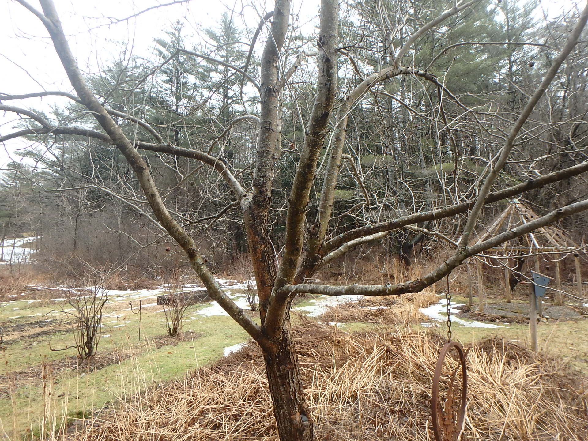 Other branches that need to be removed? Any branch that heads back through the middle of the tree. If two branches form a tight “V”, remove one of them. Otherwise they will grow together and “include” bark that will rot, and can rot the wood. If two branches parallel each other, one shades the other, so remove the least desirable branch.