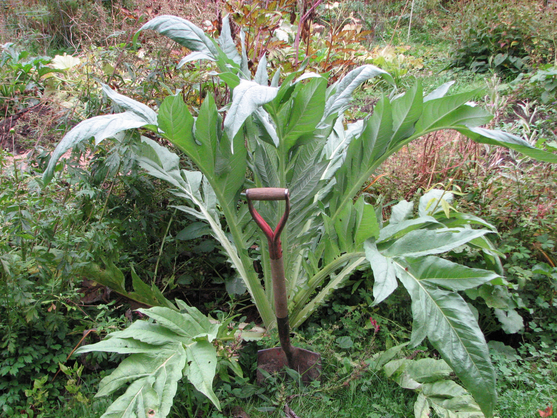 Towards the end of the growing season and before it flowers, you must blanch the leaves before eating them. Blanch in this use means depriving them of light, not steaming them. In the Piedmont district of Italy (in the north-west part, near Turin) farmers do this by digging up cardoon before the first frost in the fall. They lay it in a trench and cover with soil for 2 weeks to blanch it and give it a bittersweet flavor. Easier yet, according to the Johnny’s Selected Seeds catalog, you can blanch the plants by wrapping them with several layers of newspapers (avoid colored print), enough to keep out the light. You don’t dig them up to do that. By the way, I find I always learn something when I read the Johnny’s catalog. The variety I ordered from Johnny’s Seeds is called “Porto Spineless”.