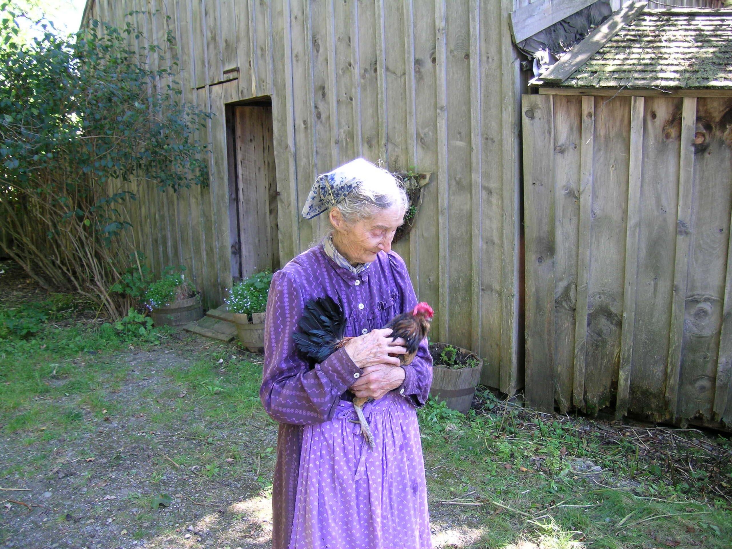 Mrs. Tudor dressed and lived as if she were living in the 1830’s, making her own clothes (similar to those of that period), growing vegetables, and until she was 84, milking her own Nubian goats. She loved to go barefoot, wearing shoes only when entertaining guests or traveling. She lived in a little house far off the beaten track in Marlboro, Vermont. Her house, built by her son, Seth, was modeled on a New Hampshire farmhouse built in 1740; it was so small that when I visited her I had to duck to get through the doorways.
