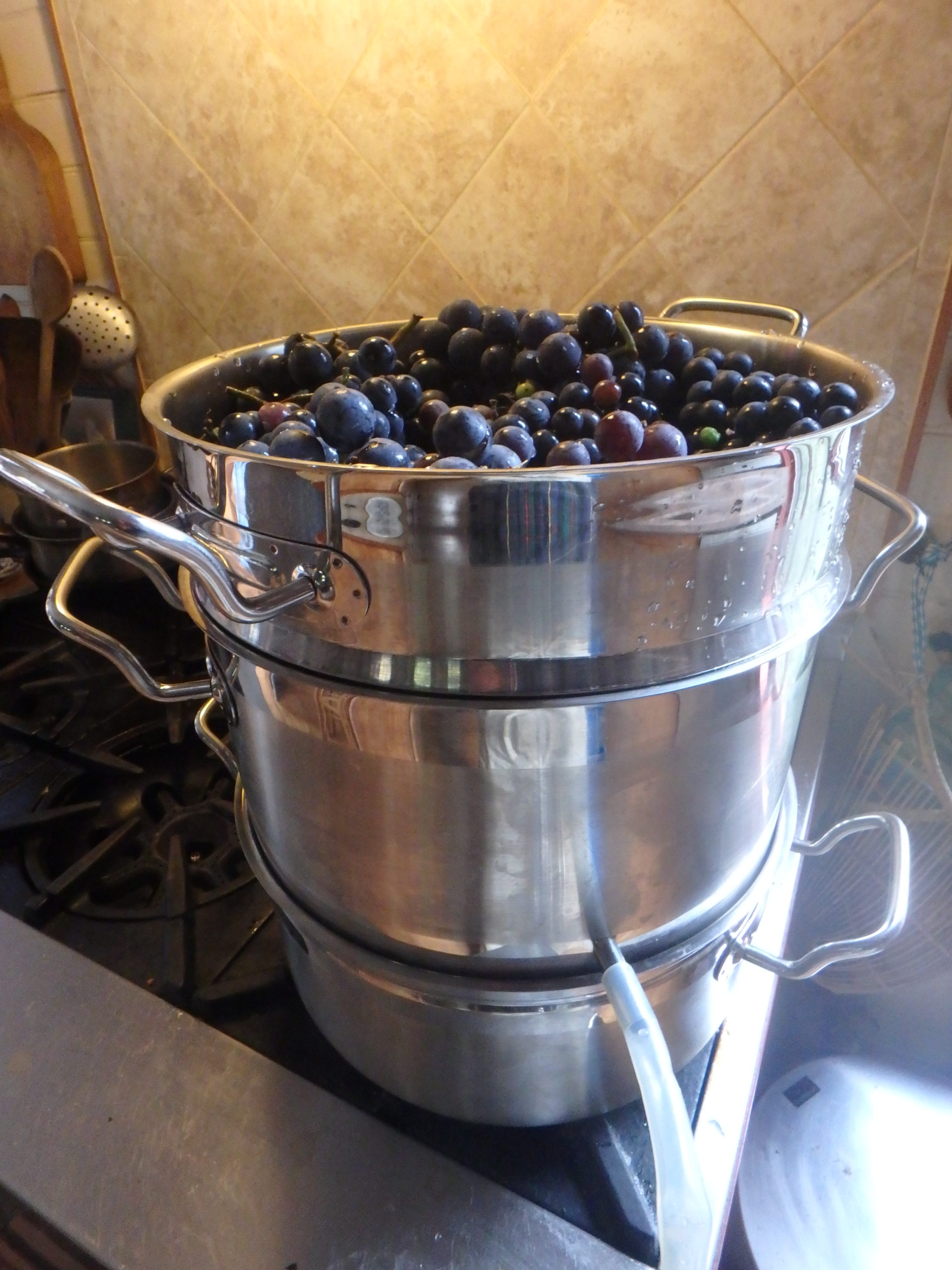 Six years ago I bought a NorPro brand “Steamer/Juicer” while visiting friends in Seattle, Washington. The salesperson had convinced me it would be great for making all kinds of fruit juices, plus, it was on sale! But until recently, I never did much with it.