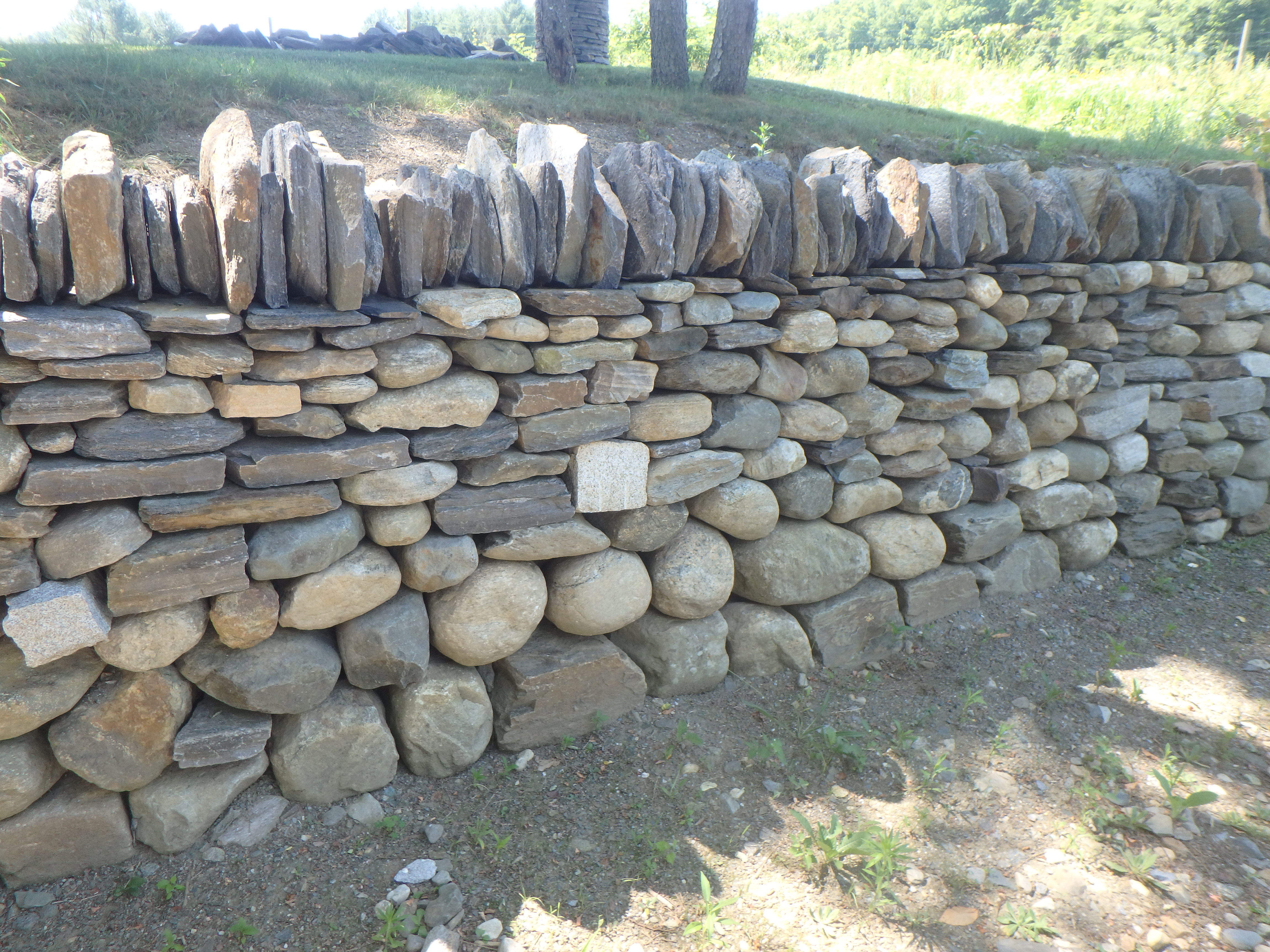 Dan Snow also reminded me of the old saying, “Two stones over one, one stone over two.” Which means, never stack similar sized stones over each other. You want each stone to be in contact with more than one stone above and below.
