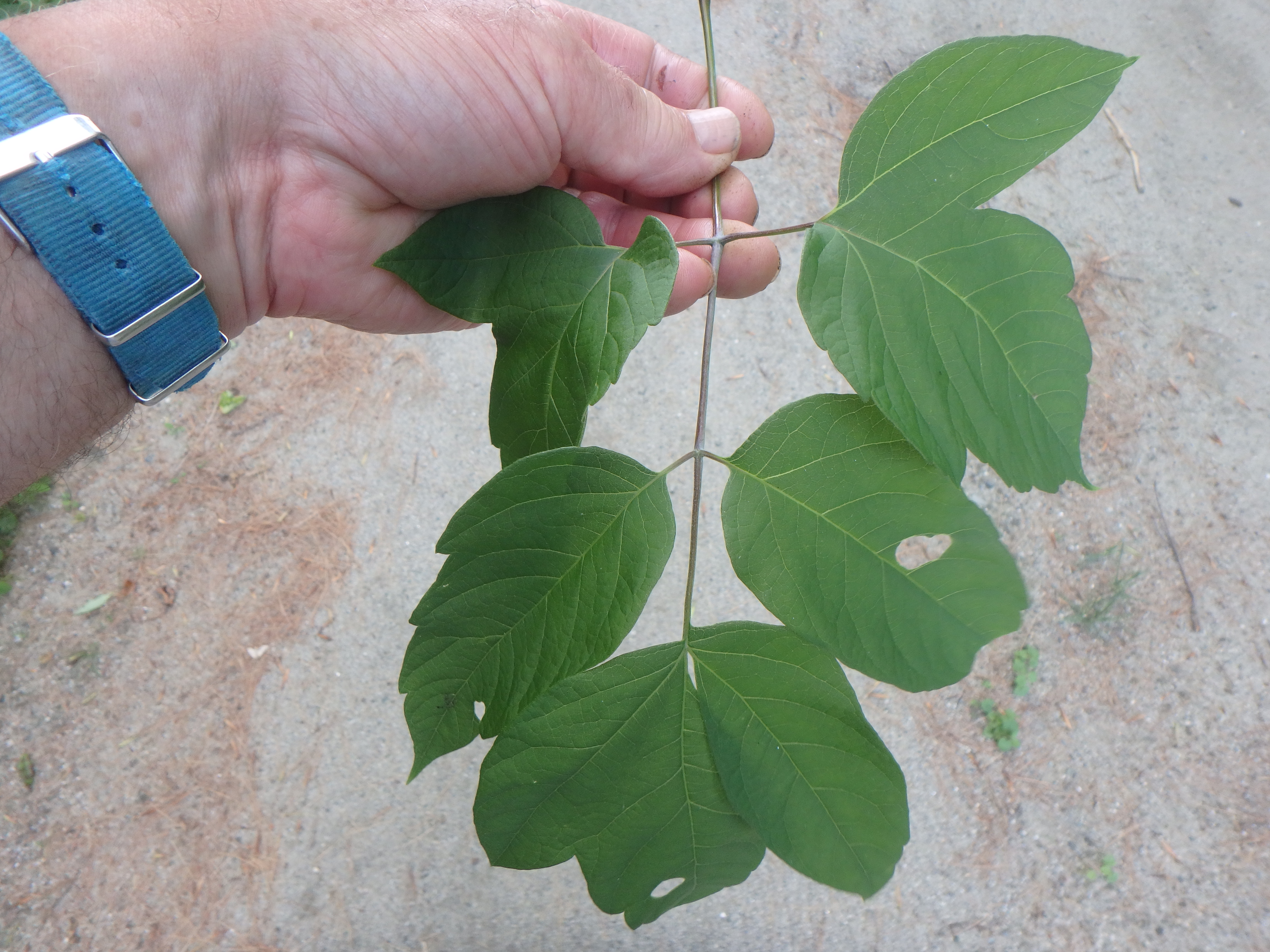 It is in the maple family, but the leaves don’t look much like the common maples we know. The leaves are composed of 3 to 9 leaflets, mostly commonly long and light green. My favorite tree expert, Michael Dirr, writes it may “appear as an unkempt shrub, a gaunt tree, or a biological fright.” I agree. But he notes that it will grow in places where nothing else wants to grow.