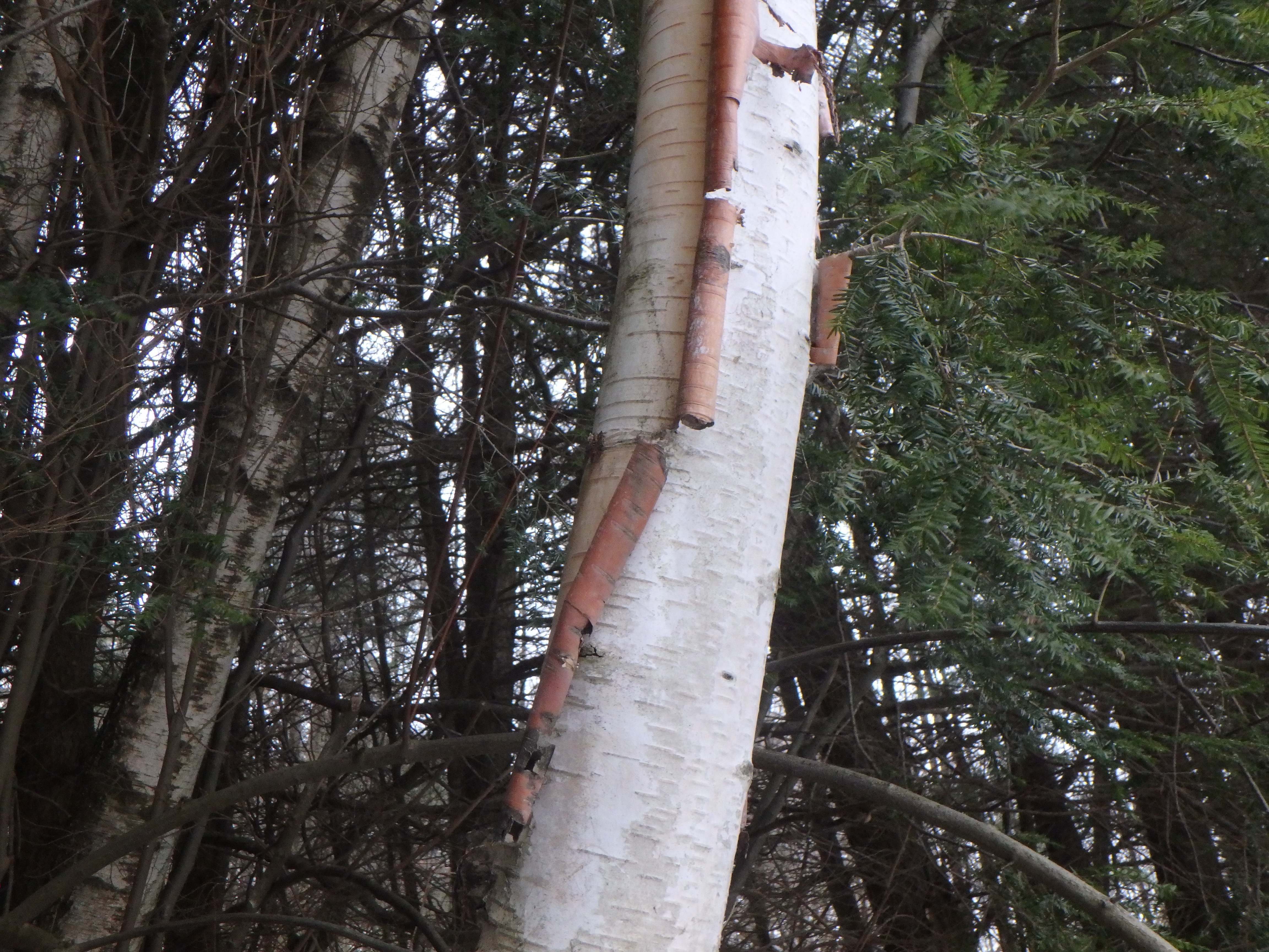 Most everyone can identify white or paper birch (Betula papyrifera) by its white, peeling bark that is easily removed from a tree by enthusiastic Boy or Girl Scouts anxious to start campfires fires. I learned from Belair that emoving the bark by hand will not hurt the tree, though you should never use a knife or ax to do so, as you can hurt the tree.