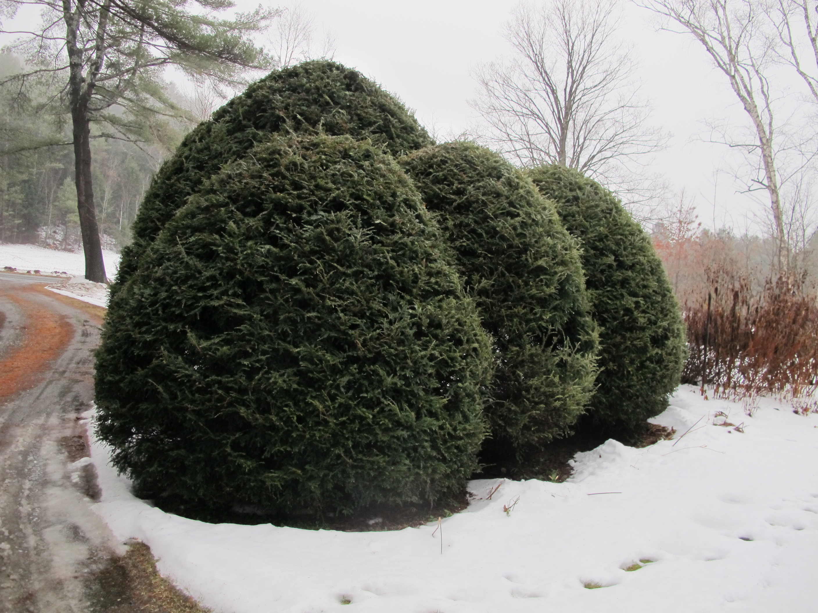 Obviously now is not the time to plant trees, but it’s a good time to imagine what they might add to your landscape after 10 or 20 years. Don’t make the mistake of planting either of these trees too close to the house – 25 feet from the house would be a minimum for either. And if you want a hedge, hemlocks can be pruned into a hedge quite nicely – though if you miss a few years of pruning they will get too tall. And that almost always happens!