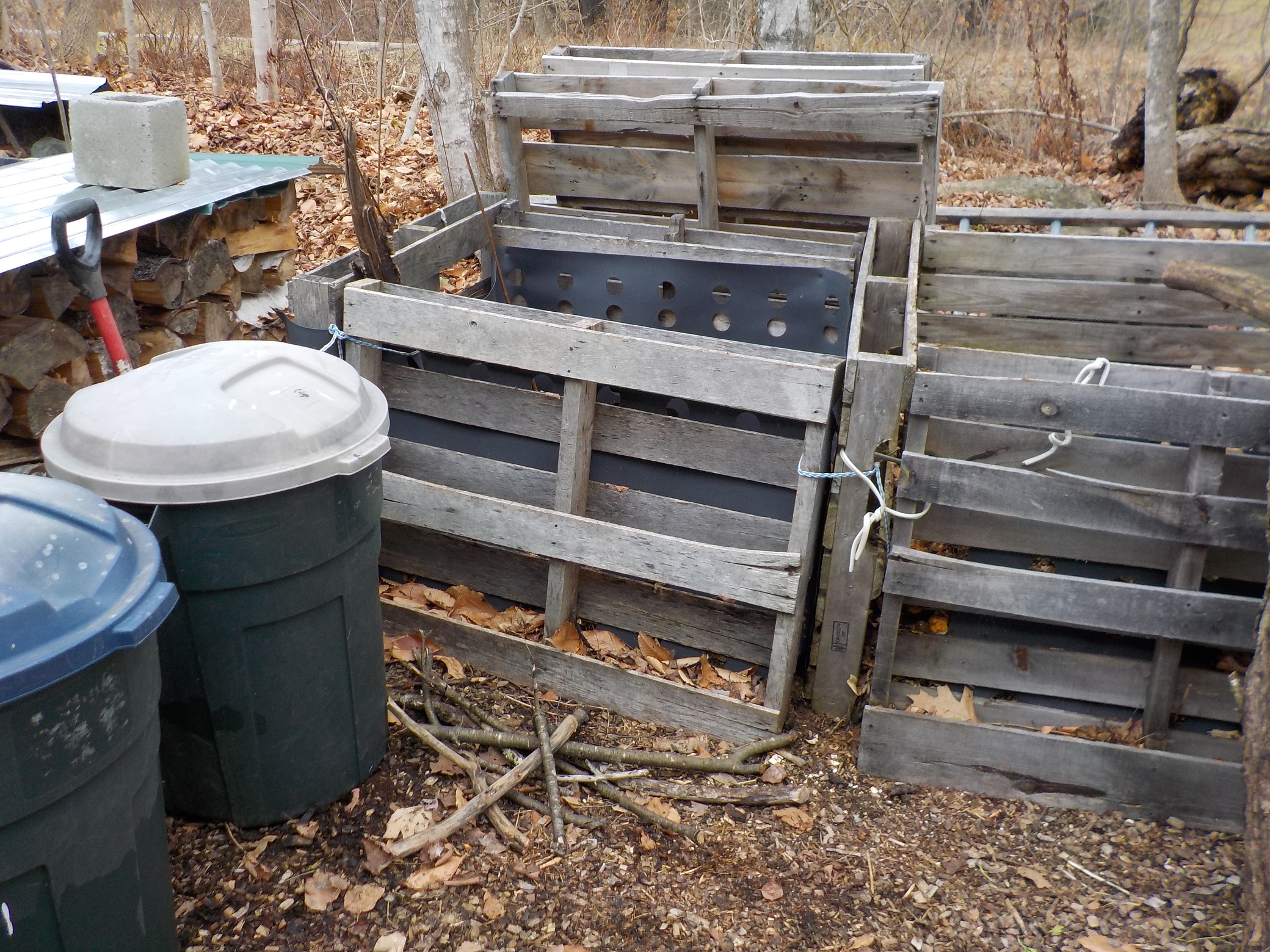 I used to keep my compost pile near the vegetable garden so I could throw weeds in it. But the problem was that in winter I needed boots or snowshoes to get to my compost pile. If you don’t want to build a bin or trudge to a distant compost pile in winter, think about just using a big trashcan and saving all your scraps until spring when things thaw out and temperatures are good for composting. This will also keep dogs and skunks out of it. Recently I built a nice bin made of wood pallets that is next to my woodpile, near the house – and more accessible all year.