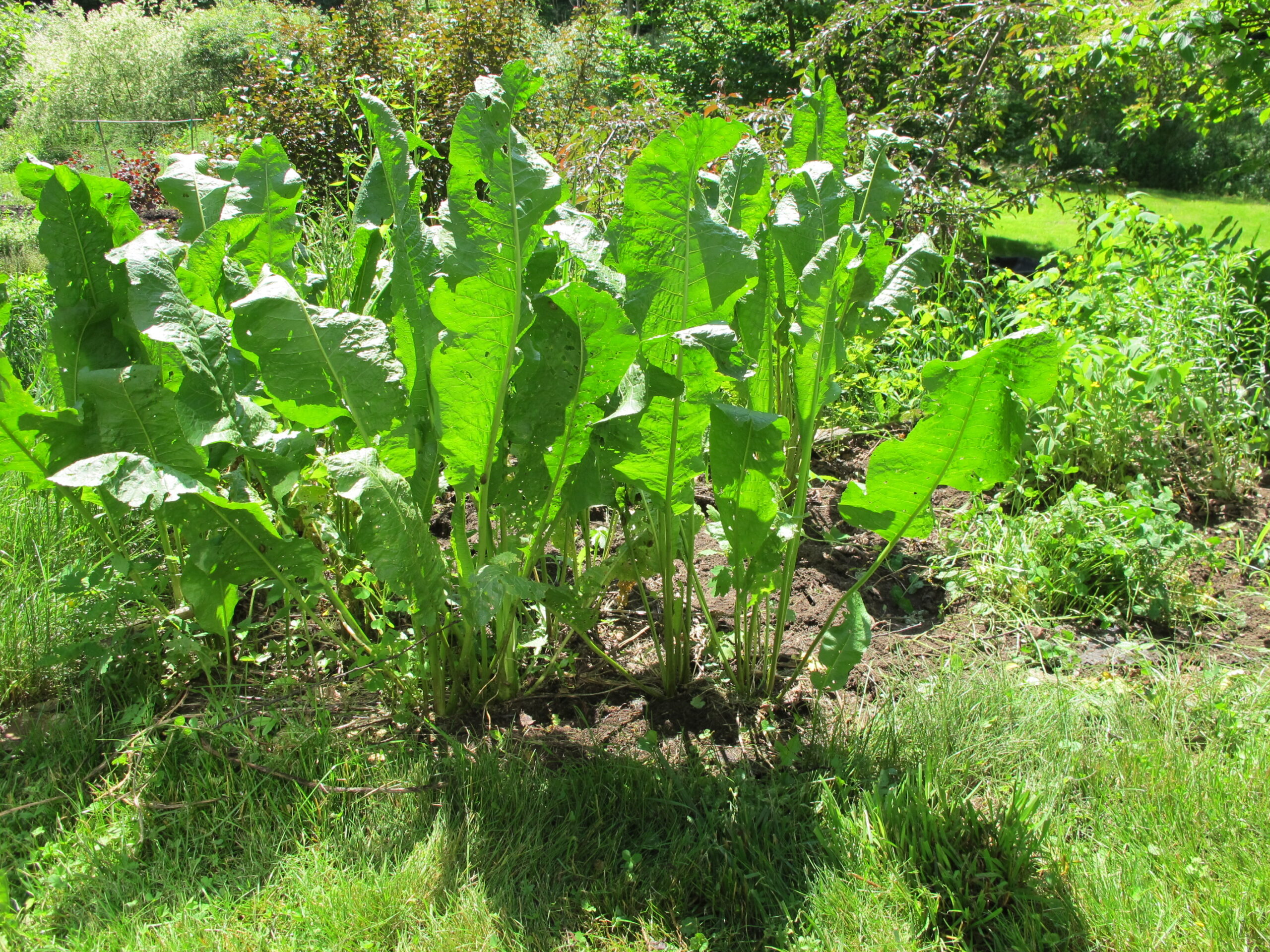 Horseradish is big plant. The roots can be used to make a spicy condiment for sandwiches.