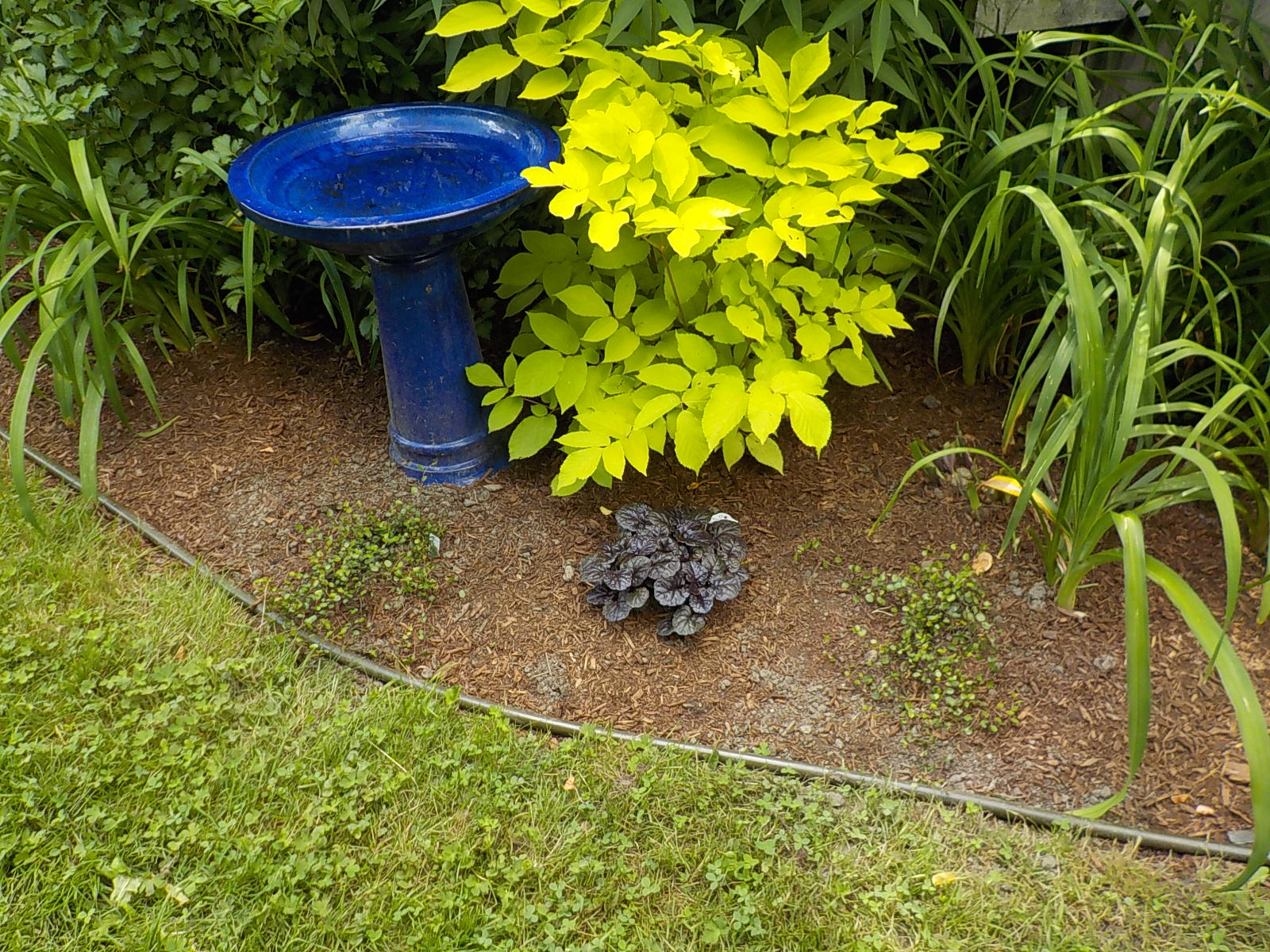 People who mow, generally, also like to string trim the edges of beds and around trees. A common mistake is to trim the edges too close to the ground, “scalping” the grass near the flower beds. I have no suggestions on how to avoid this, except to politely ask the mower NOT to trim so darn close. Maybe growl a little.
