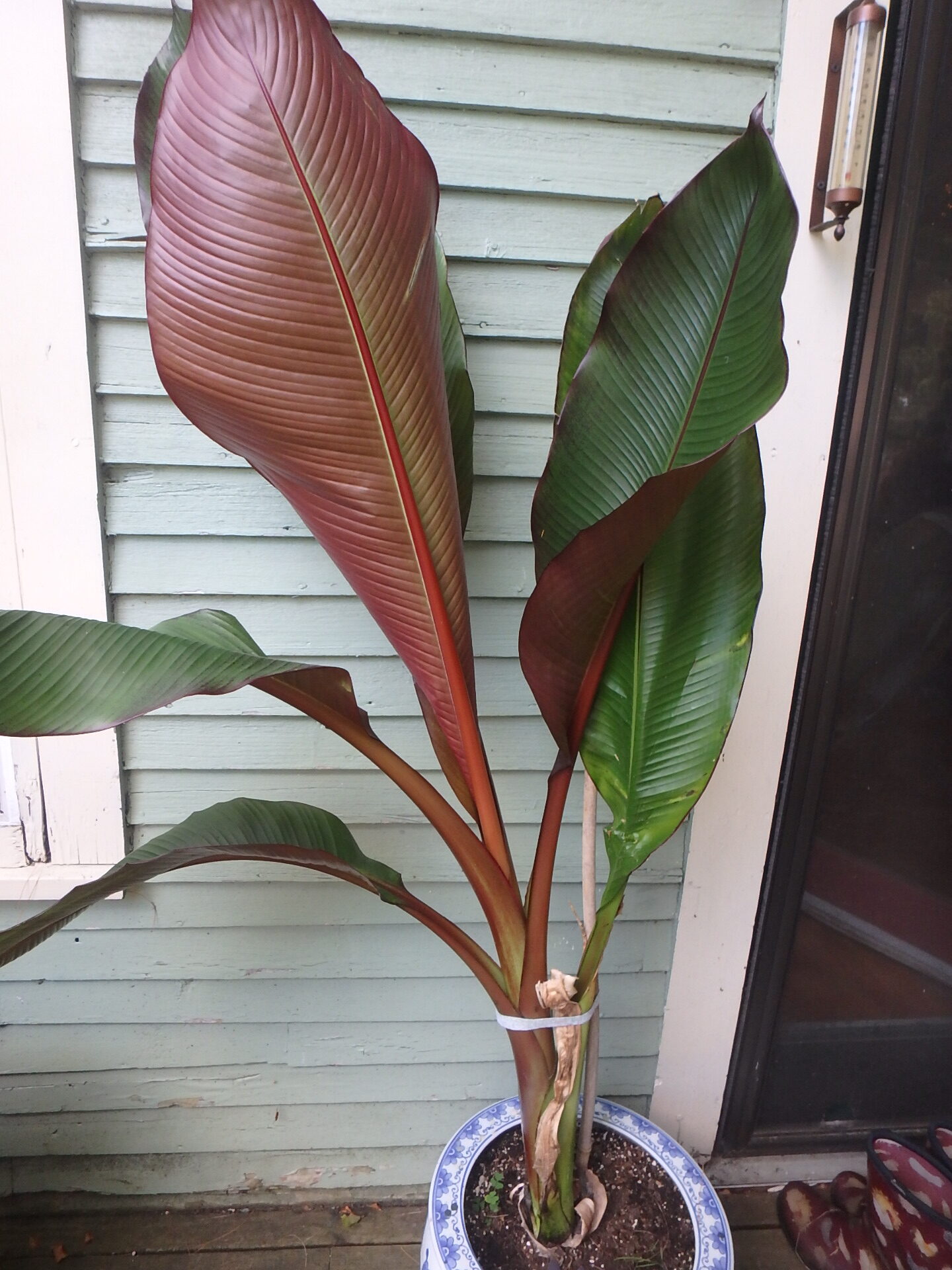 This banana tree thrives outdoors in summer but does not produce fruit.