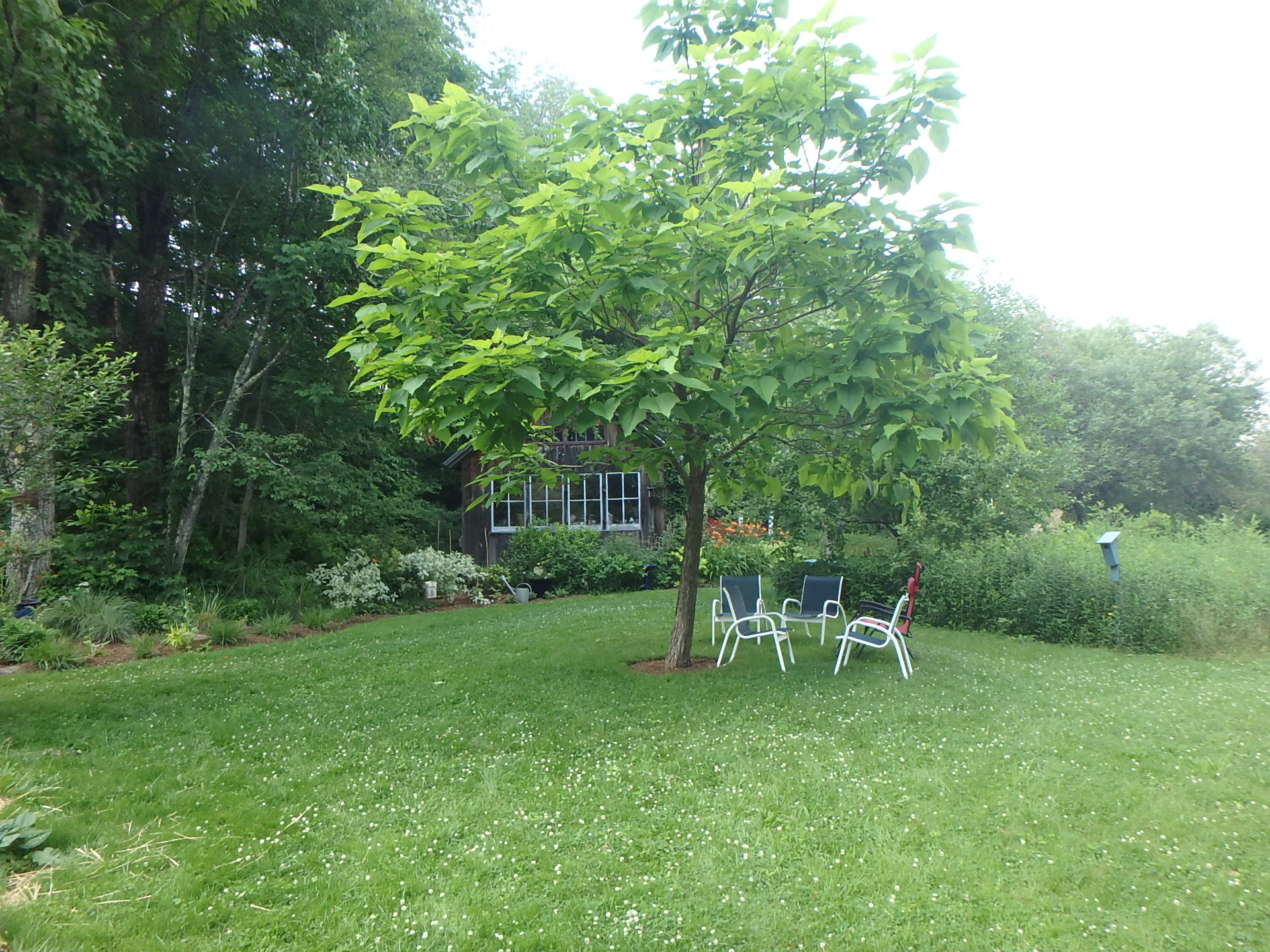 This Catalpa planted 6 years ago provides a nice shady spot to chat or rest.