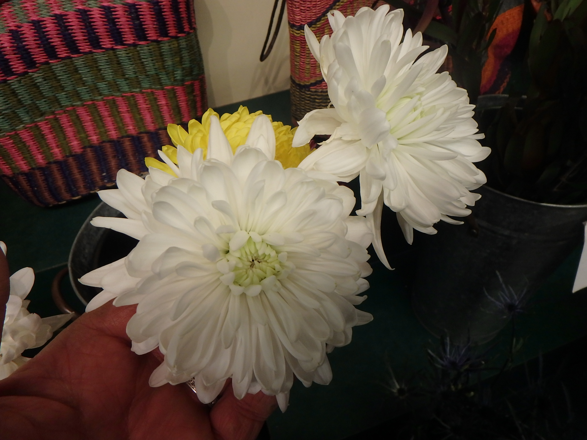 Looking for a fun project with your kids? It’s easy to change the colors of chrysanthemums. Leave them out of water for 12 hours, then cut off 2-3 inches and put them in water with food coloring. Obviously, you should start with white chrysanthemums. The colors you get may not be exactly the color you see on the food coloring, but it can be quite dramatic.