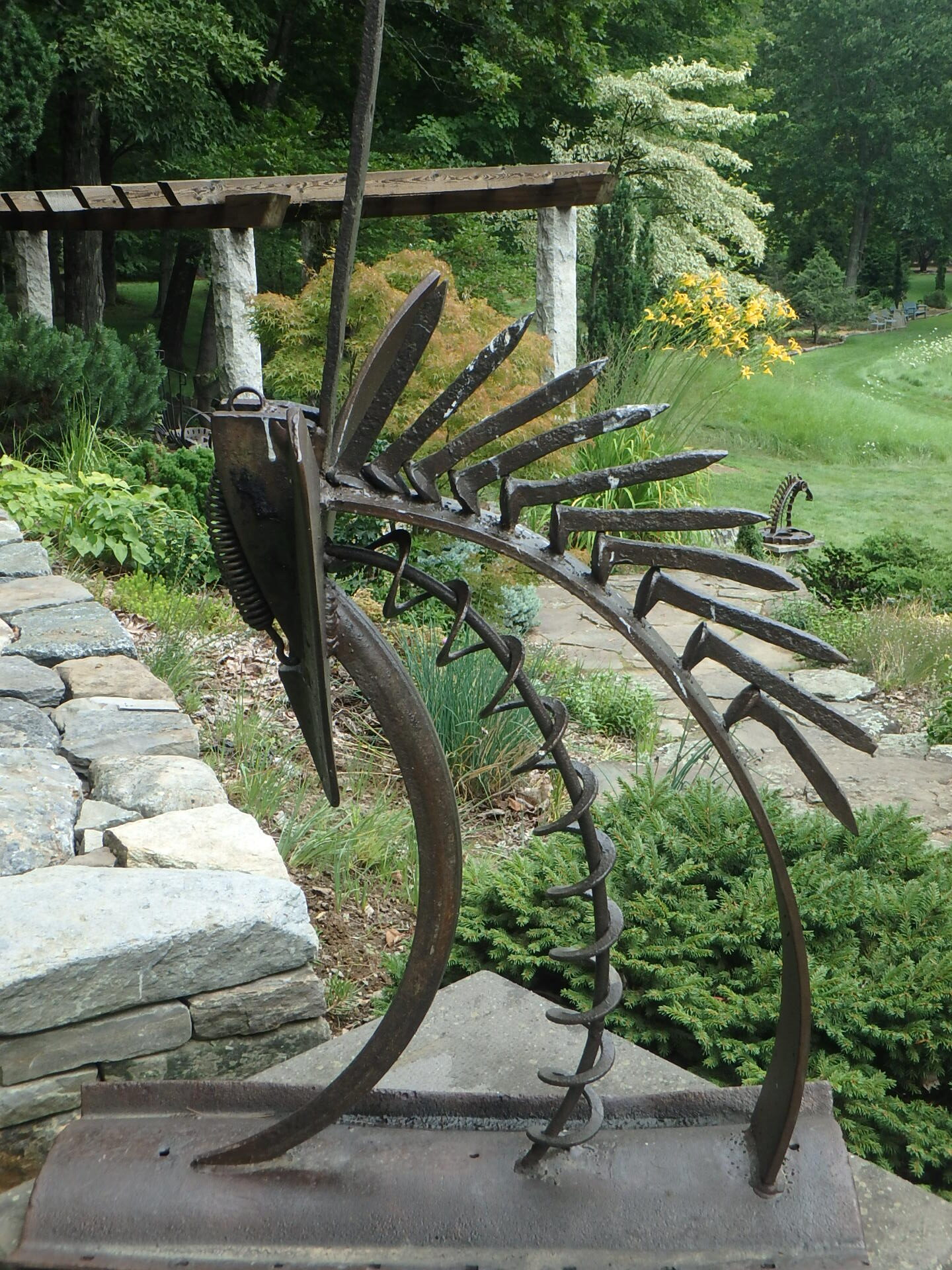 Bedrock Garden only recently was deeded over from the original owners, Jill Nooney and Bob Munger, to the non-profit that manages the property. Jill is an amazing sculptor who for over 30 years has created art to surprise and delight visitors to this 20 acre garden. Much of her art is painted welded steel that will delight visitors for the century ahead. She is the modern Alexander Calder of gardens.