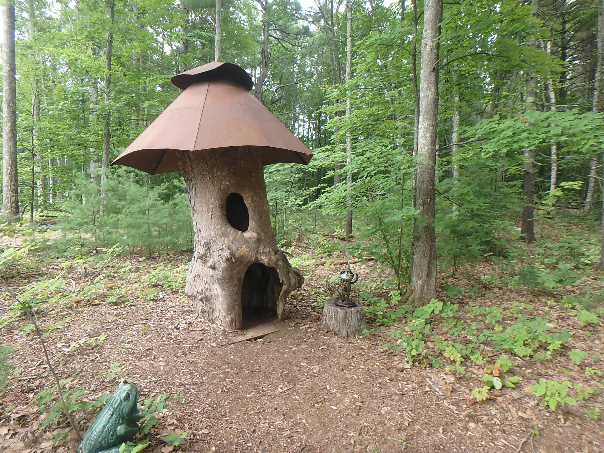 Sculpture in the woods at Bedrock Gardens