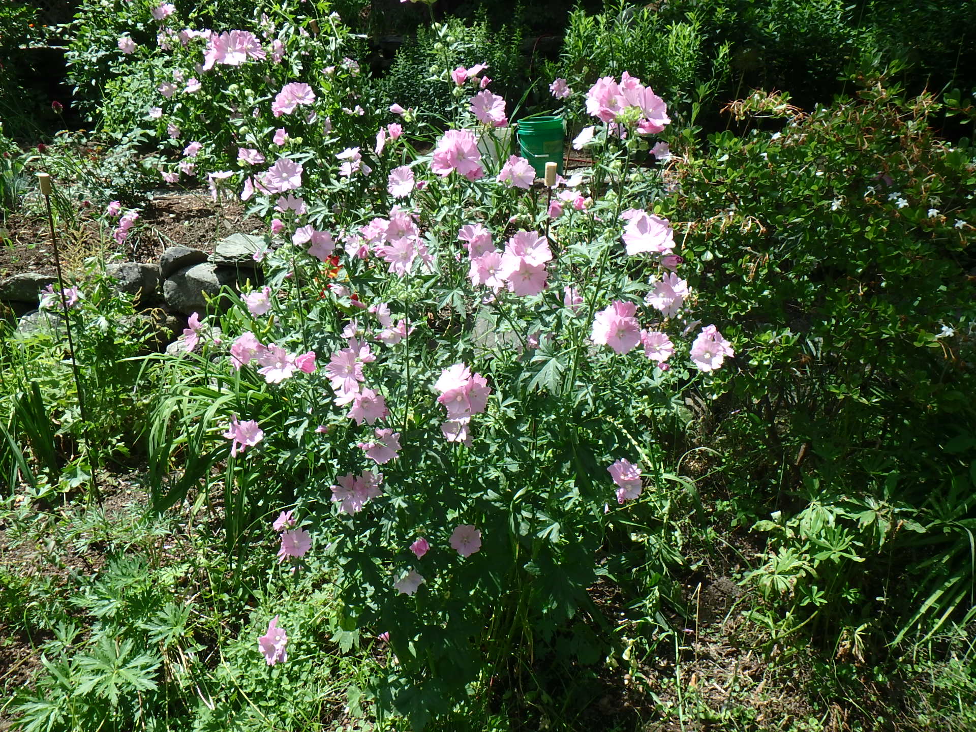 Another favorite of mine is pink mallow (Malva alcea). This is a big, often floppy perennial with lots of pink blossoms that resemble those of a hollyhock. In my garden it pops up anywhere and everywhere. I have to treat it a bit like a weed to keep it in control. It does best in full sun and rich soil that stays lightly moist.
