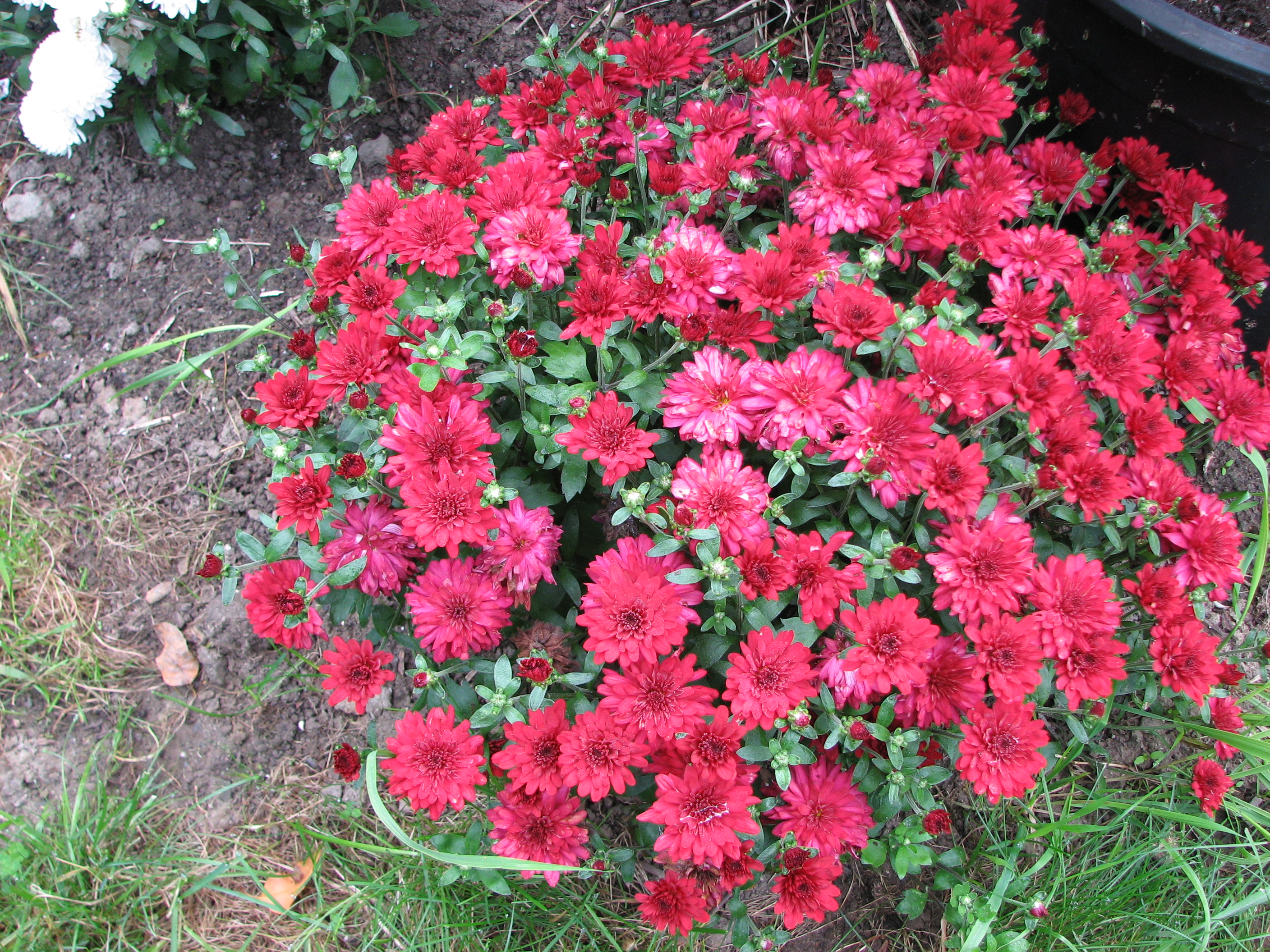 Sometimes I just plunk those mums down, pots and all, on the front steps. Doing so means I will have to water them every hot sunny afternoon, particularly if the mums are growing in peat pots instead of plastic ones. I like peat pots – they don’t use any petroleum products – but they do dry out more quickly than plastic. This is true even if you plant the pots in the ground. The lip of a peat pot will let moisture evaporate and dry out the roots unless the ground is pretty wet. So tear off the lip of the peat pot, or remove it entirely if popping them in the ground.