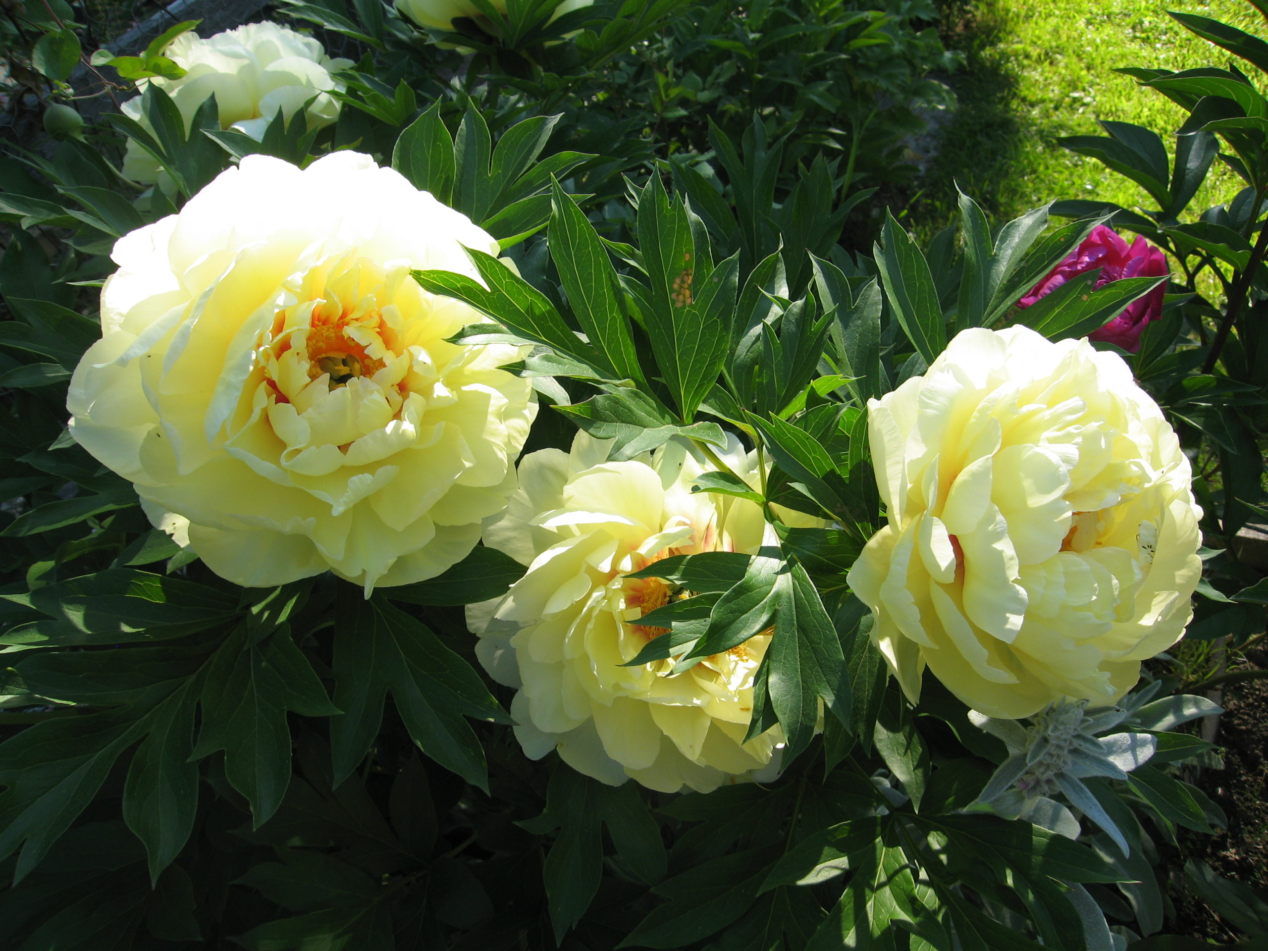 Itoh peonies can bloom in colors other peonies could not even dream of: yellow with peach, for example. And they can bloom for a full month, producing 50 blossoms or more at maturity. But they are expensive, so I have never gotten one – until this year.