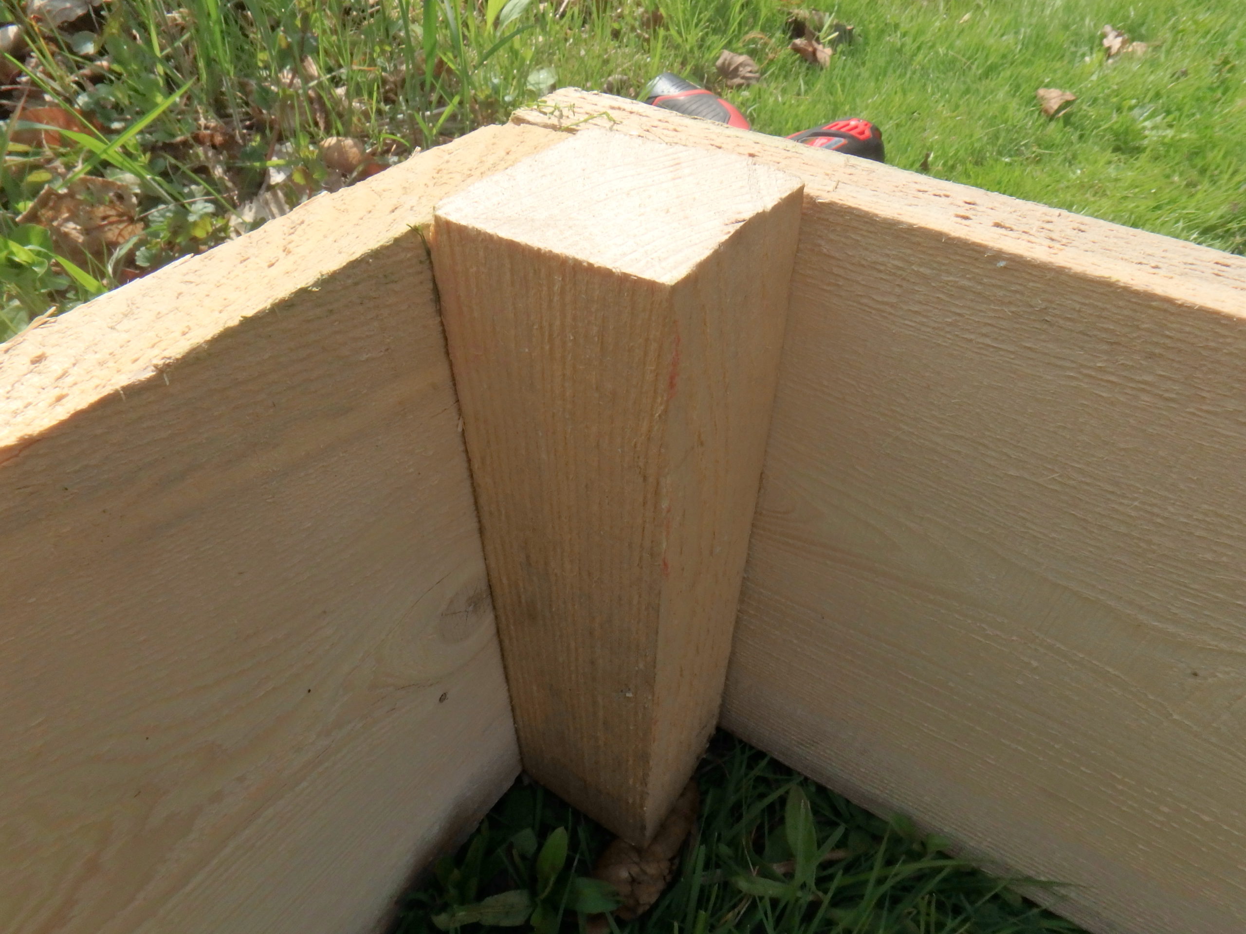 Those 8-inch pieces of 2 x 2 are for the corners, to make them sturdy, square, and to allow the screws to bite into something more substantial than a 1-inch plank. I screwed them onto the ends of the long planks, then stood up the planks and screwed the short planks into the corner pieces. That is easier to do if you have someone helping you, but you can always lean the long planks against something to keep them vertical if you are working alone.