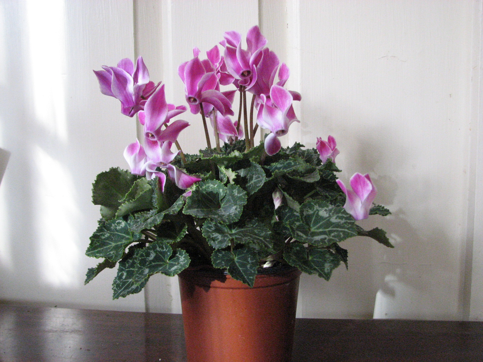 Cyclamen. Another low-light plant. This one suited for even less light than Christmas cactus. If you give it any direct sunshine, an hour or two of morning sun is plenty, but indirect light is better.