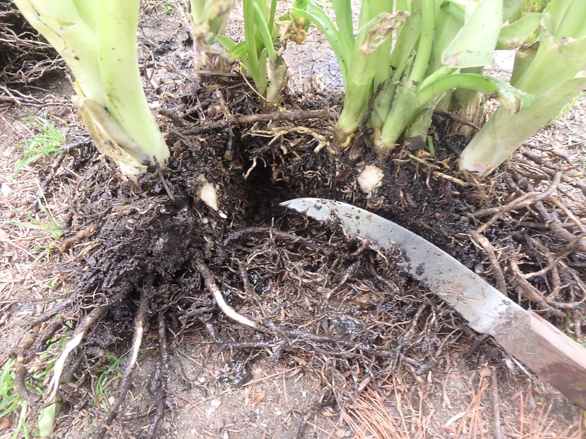 I was dividing some hostas recently, and found some clumps hard to pull apart. So I used a curved, serrated knife to cut through some roots, allowing me to separate them. If you don’t have a garden knife, buy a steak knife at a yard sale or junk shop – on sneak one out of the kitchen – and it will work just fine.