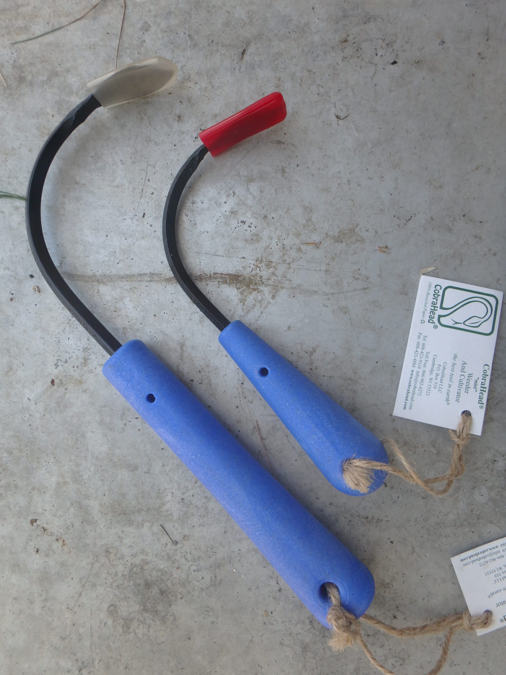 Of course every gardener needs a good weeding tool. My favorite is the CobraHead, and has been for years. They now have a mini-Cobrahead which is designed for smaller hands. Available from CobraHead.com or 866-962-6272 or at your local garden center. It has a single curved tine like a steel finger that will tease out roots from below while you tug a weed from above. I emailed the owner, Noel Valdes, who told me there are plenty in stock.
