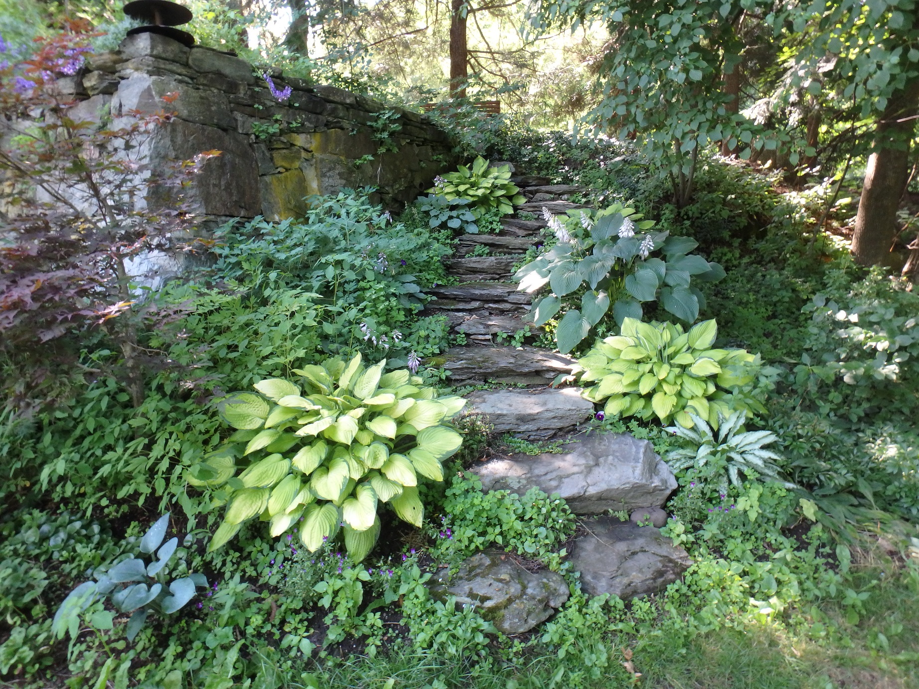 If you have gardens on different levels, stone steps are great. Line them with plants that have interesting foliage that looks good all summer. People just want to walk up steps to see what is at the top (like the bear going over the mountain in that kids’ song). I put in steps a few years ago and they are a constant source of pleasure for me.