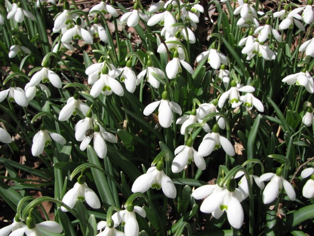 My lawn is full of snowdrops that have planted themselves. I assume that they produce seeds that wash into the lawn with early summer rains. The bulk of my snowdrops are planted on a hillside above the lawn. But you can plant early spring bulbs in the lawn, too. Just don’t plant daffodils or anything with large leaves because you won’t be able to mow the lawn where they are growing until the leaves yellow and dry off – around July 4th. Bulb plants need to re-charge their batteries, if you will, by getting sunshine and storing energy.