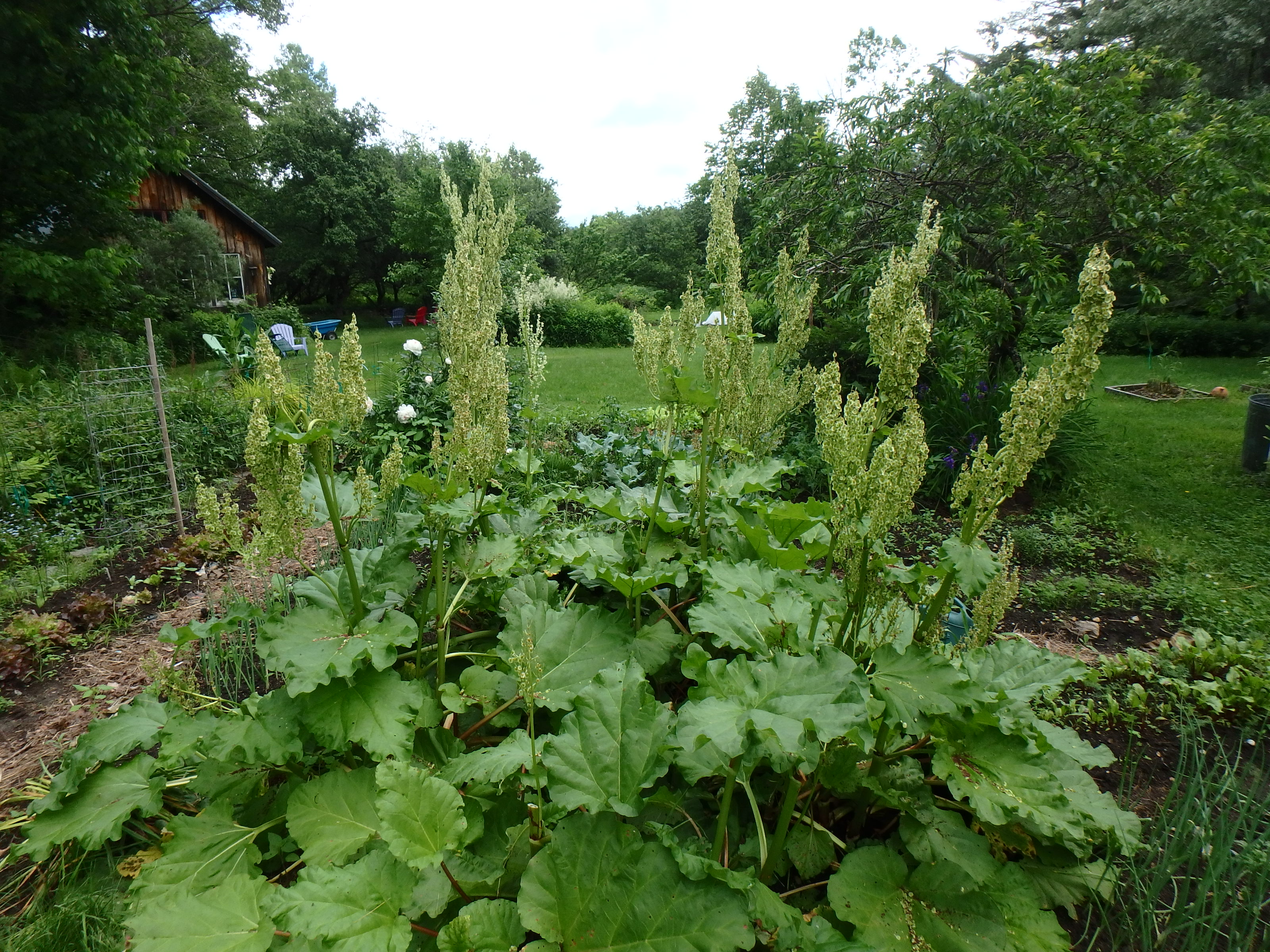 By now, however, rhubarb is sending up tall shoots with white flowers to produce seeds. They are quite spectacular as flowers go – they grow as fast as Jack’s proverbial beanstalks. But like all seeds, they consume energy and minerals from the soil, so it makes sense to cut them down.