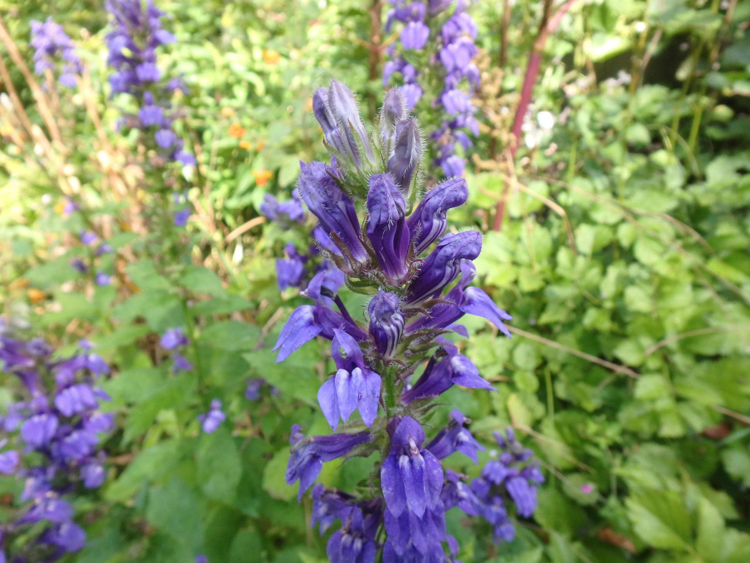 Great blue lobelia (Lobelia siphilitica) is a fine, upstanding blue-flowered plant that comes and goes in my garden as it pleases. I let it pick its own location, seldom weeding it out, as I know it will never be a problem. It forms small clumps of a dozen plants or less, each spike standing 18-24 inches tall. I’ve known it to travel over 100 yards from one year to the next, and I don’t recall that I ever purchased a plant.