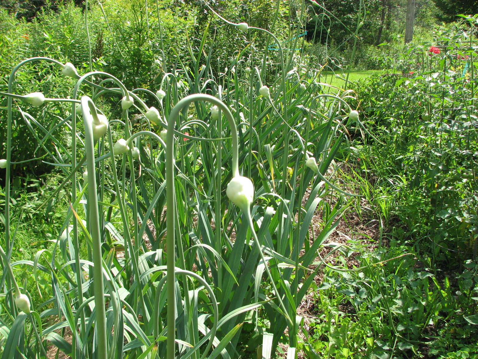 Some believe that cutting off the scapes early on will produce bigger cloves of garlic, but I have never been able to tell if that is true or not, though it makes sense. Producing flowers and seeds uses energy that might otherwise go to producing bigger bulbs.