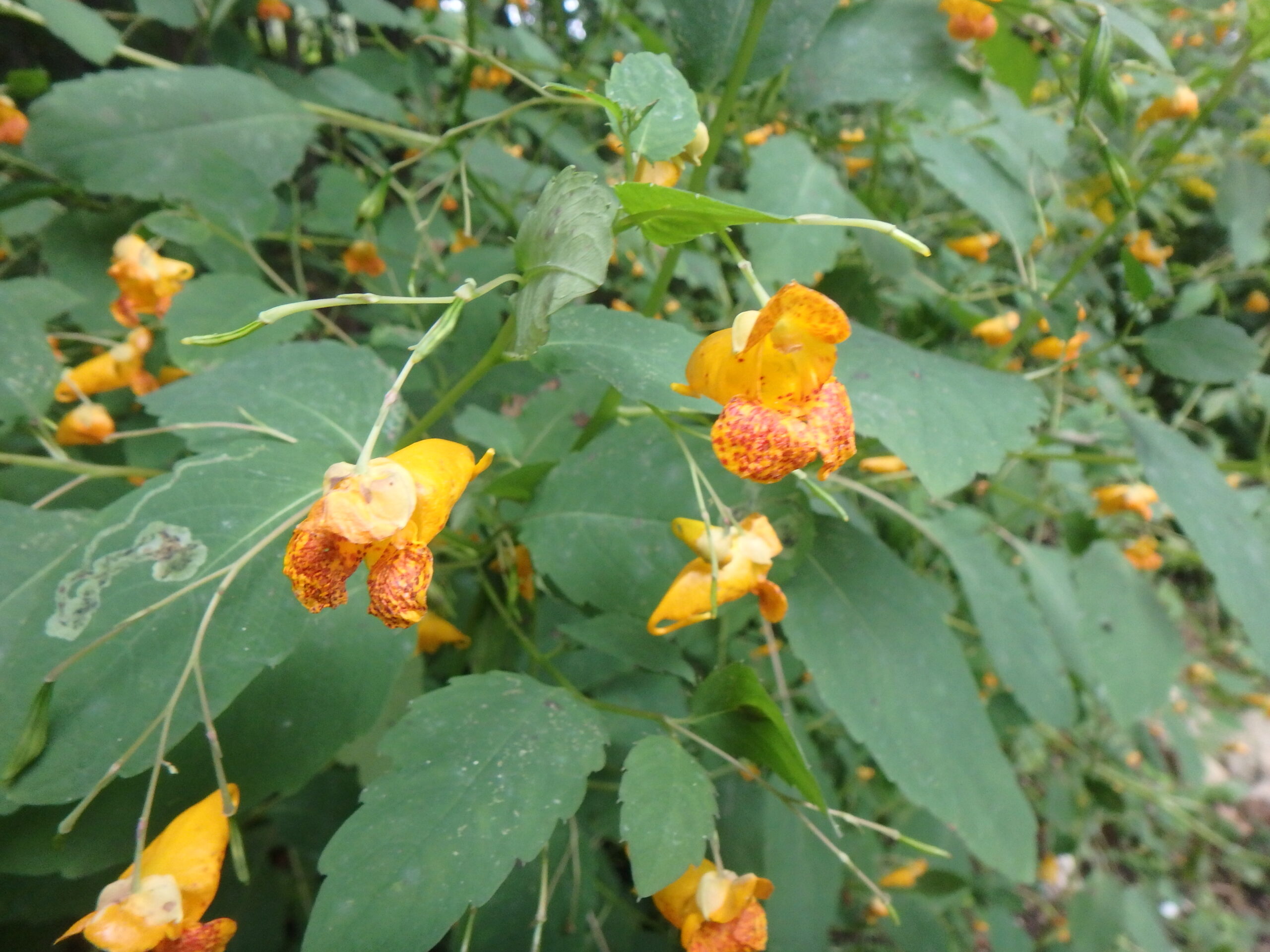 I have lots of jewel weed (Impatiens capensis) in partly sunny to shady flower beds that have rich, moist soil. It is a native plant, but one that can take over if you let it. I recently removed some that was well over six-feet tall. It was in a bed with tall perennials, and I guess it outgrew them to get more sunshine, In other places, where the completion is minimal, it might only get 3- or 4-feet tall.