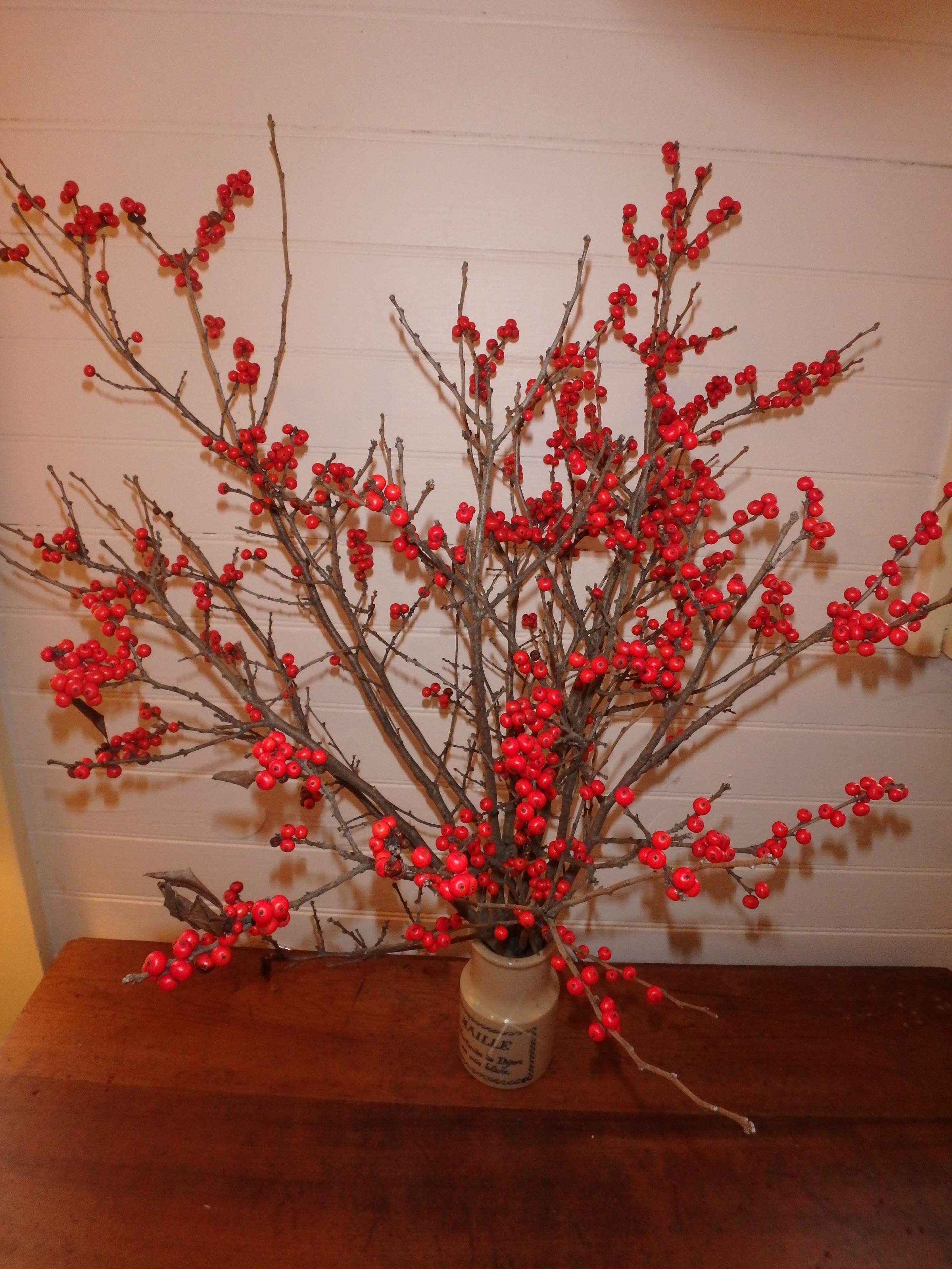 I almost always have a pair of pruners in my car, so when driving past an uninhabited swampy area recently I stopped to pick some winterberries. These red berries are the fruits of our native holly, Ilex verticillata. Unlike the evergreen varieties with shiny green leaves, winterberry drops its leaves in the fall, but clings to the red berries displayed on the female bushes.