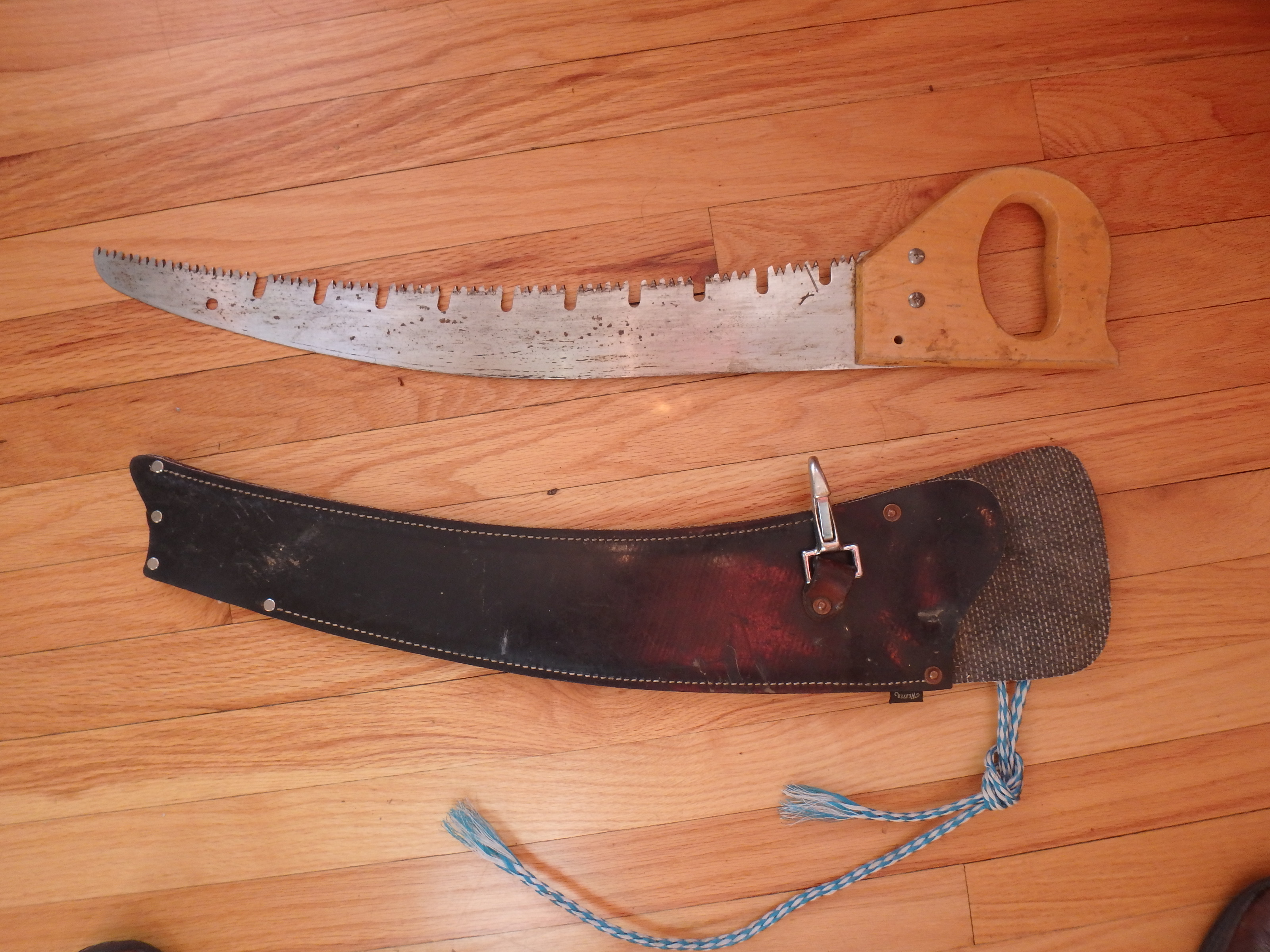 Get something with a blade a foot long or more so you can cut large branches. Small folding saw are okay for many cuts, but my favorite is a long curved saw made by Corona. It has a 21-inch blade and the big teeth with gaps to remove sawdust and prevent it from clogging up and binding the saw. It’s model RS 7160 and is available from OESCOINC in Conway, MA for about $47; I have the sheath for it, which costs another $35, but really is needed for a saw with teeth that could hurt you when carrying it. It’s my alternative to a chain saw for large branches.