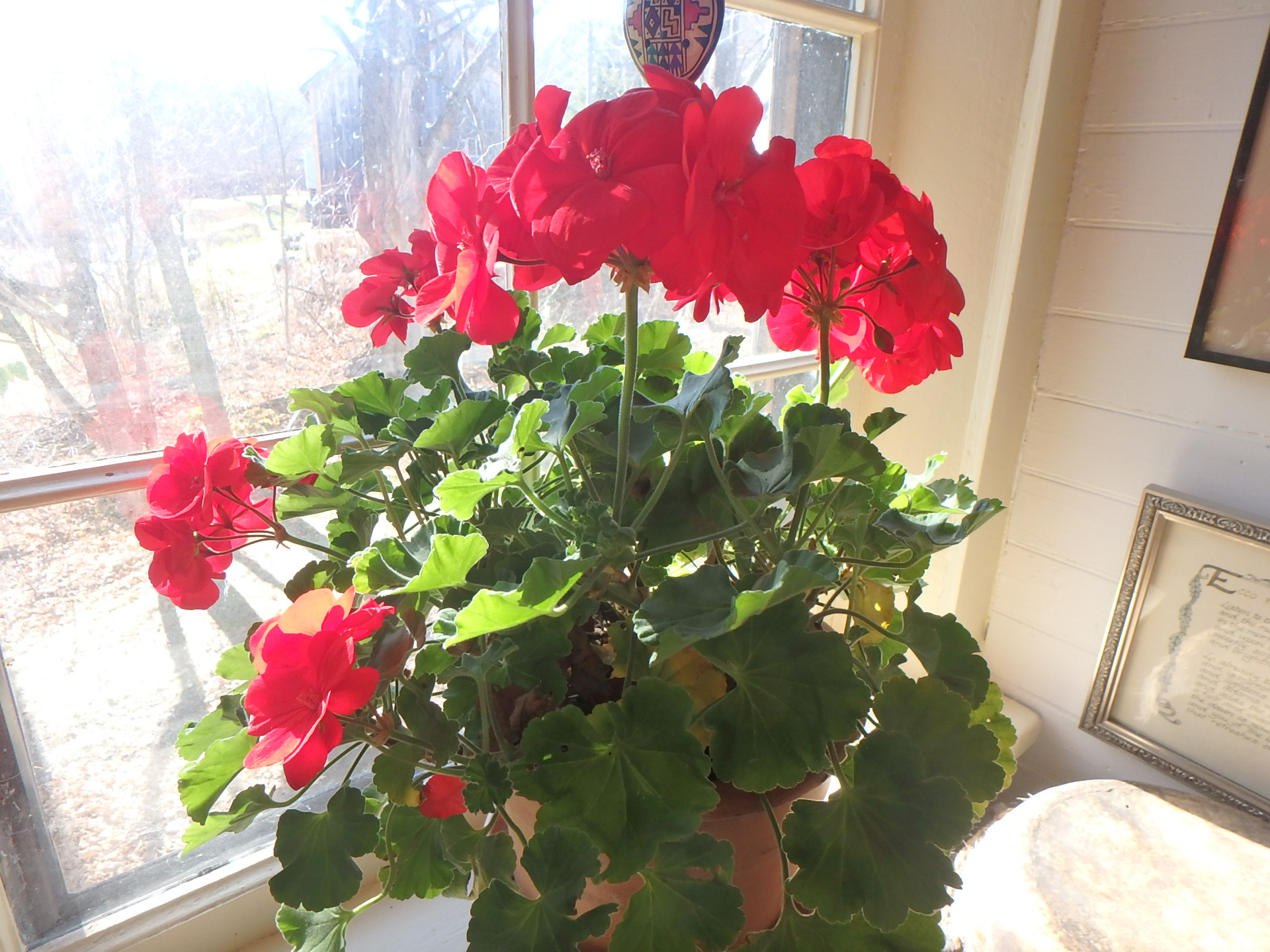 Although this may sound silly, I am grateful to have so many potted geraniums in the house. This year we brought in all our geraniums ( Pelargonium spp., not to be confused with perennial geraniums of a different plant family that winters just fine outdoors). They sit on bright windowsills and will bloom off and on all winter, and go outside next summer. Their bright red blossoms give me joy.
