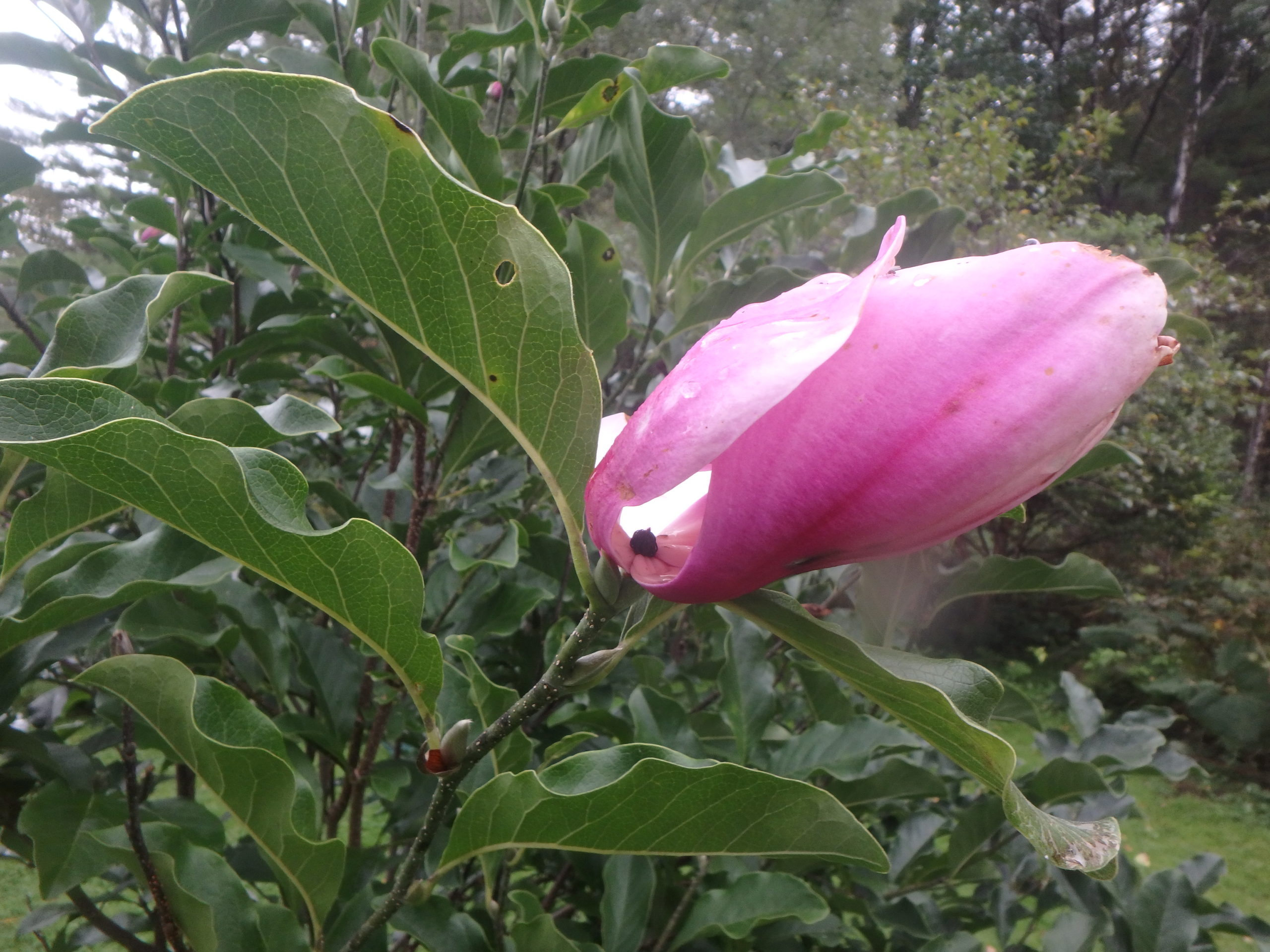 The Merrill magnolia does best in full sun and rich, moist soil. The literature says it needs well drained soil, but mine has thrived near my brook. The water table is near the soil surface all winter and spring, and only a couple of feet down in a dry summer. So I was not at all sure that mine would succeed. In the twenty years or so since I planted a 4-foot tall specimen, it has grown to an estimated 40 feet tall and 30 feet wide.