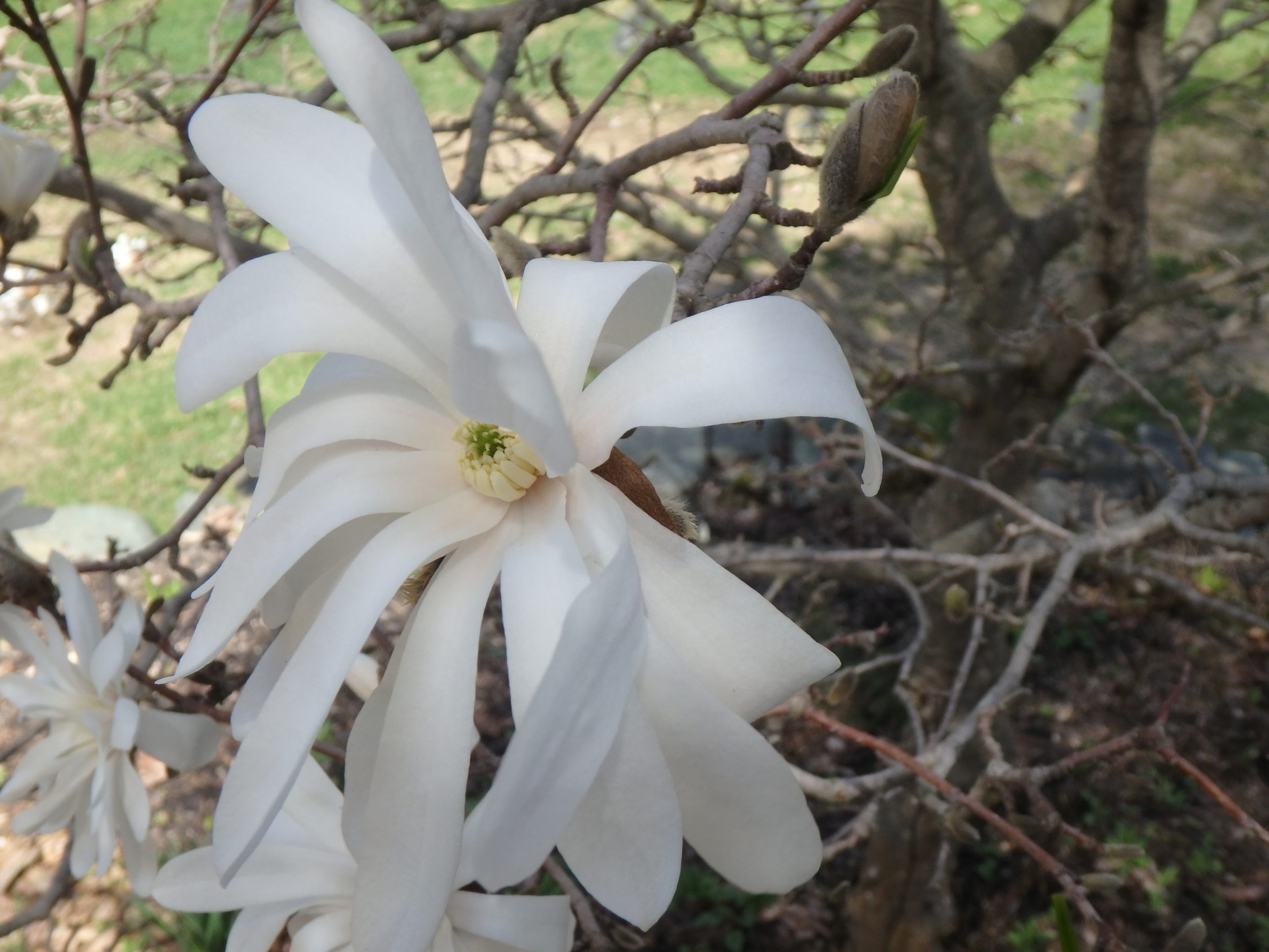 The star magnolia is a species magnolia, not a hybrid. It stays smaller than my big Merrill – perhaps to 15 or 20 feet tall and nearly as wide. So for smaller landscapes, it is a good choice. It is rated at hardy to Zone 4, but some grow in Zone 3. The blossoms are white, and come earlier than the Merrill – so they can be damaged by late frosts. There are single blossoms and double blossoms with extra petals.