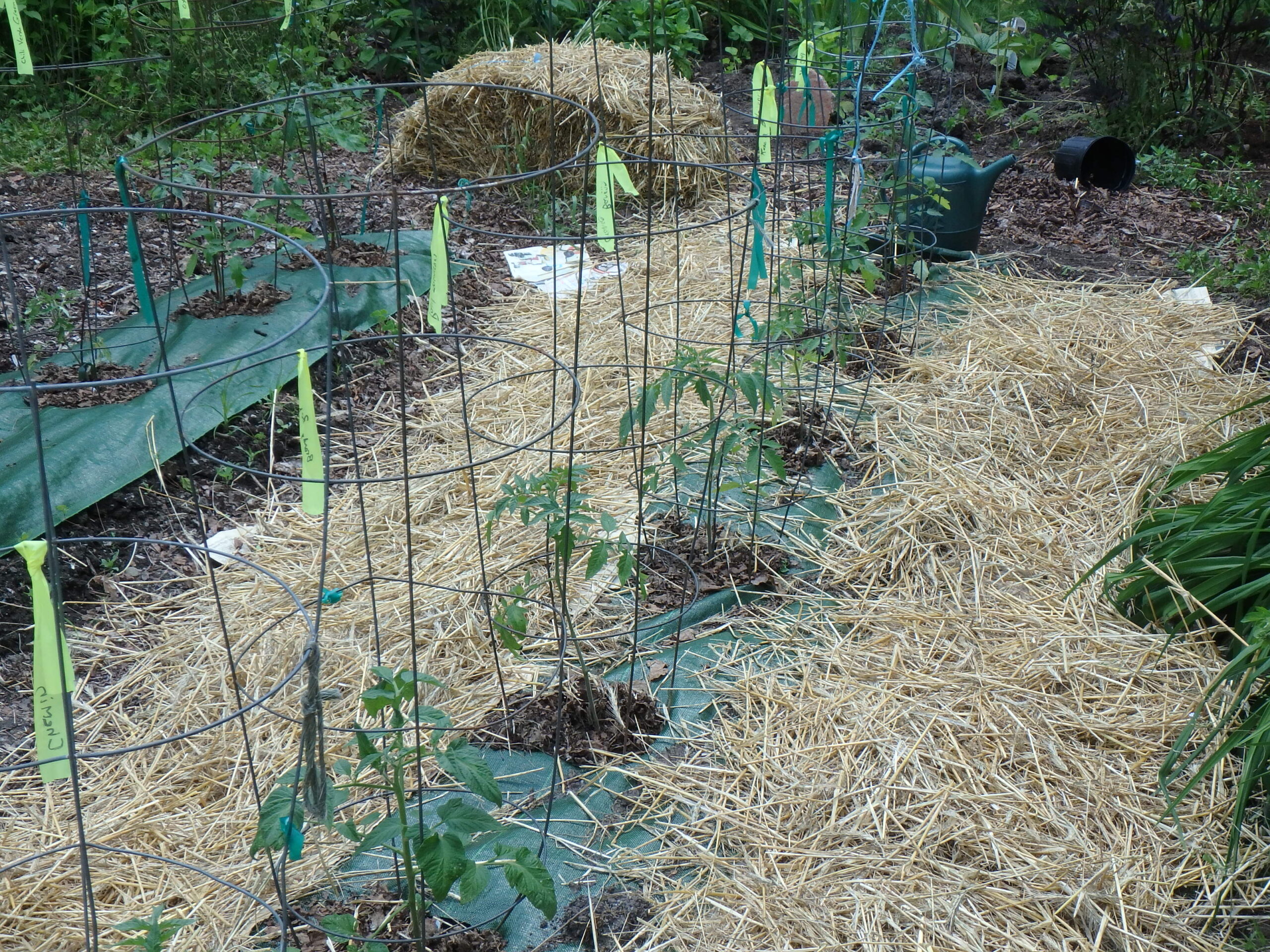 Tomato cages support your plants and hay or straw helps prevent soil-borne diseases scaled