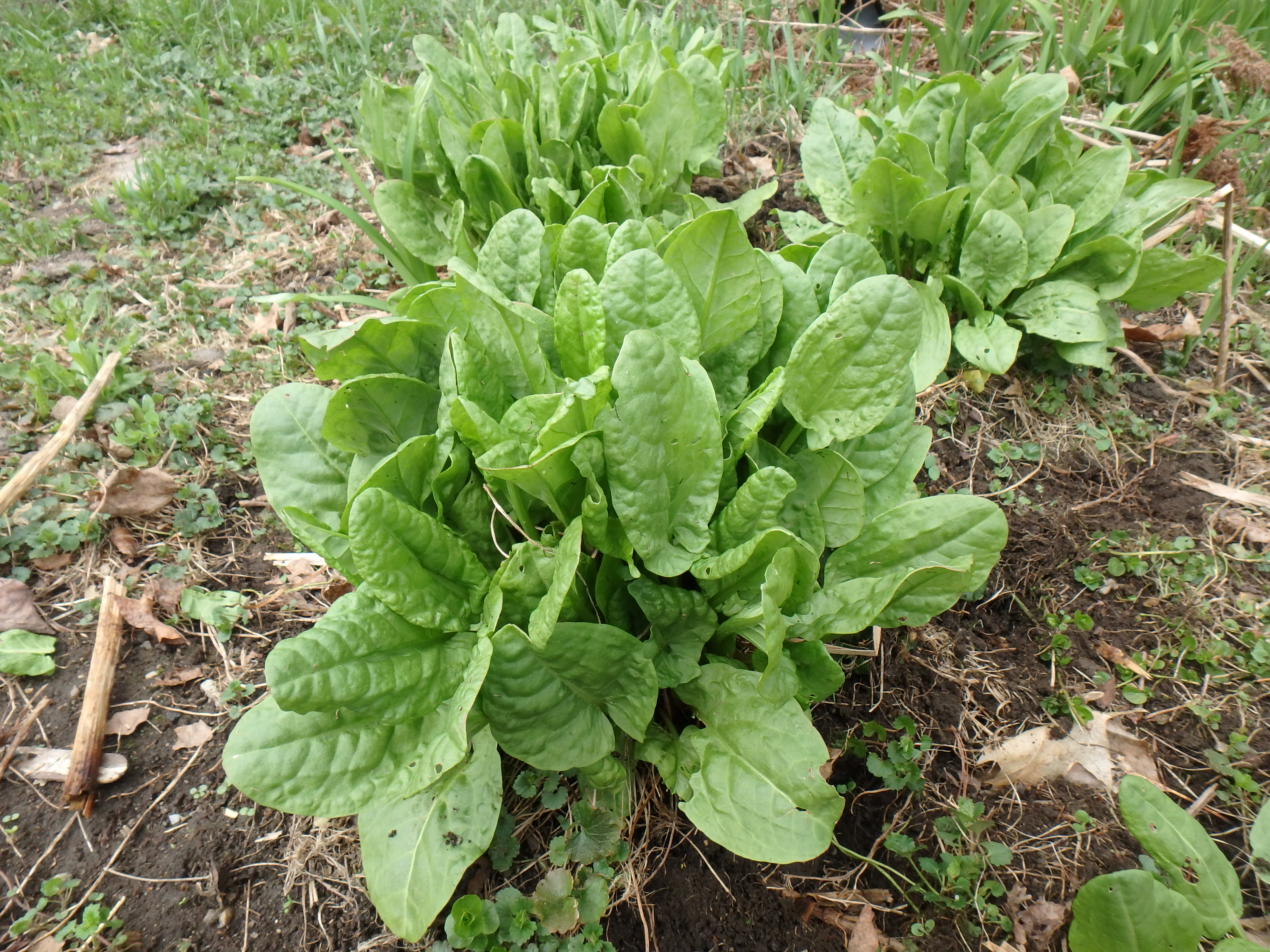 My sorrel is up now, and will be ready to harvest in early May. Sorrel is a great favorite of French cooks who make a soup with it. Although I grow it, I sometimes forget it’s there and overlook it. It’s a bright leafy green that comes back, year after year. It has a sharp lemony flavor, a bit like wood sorrel.