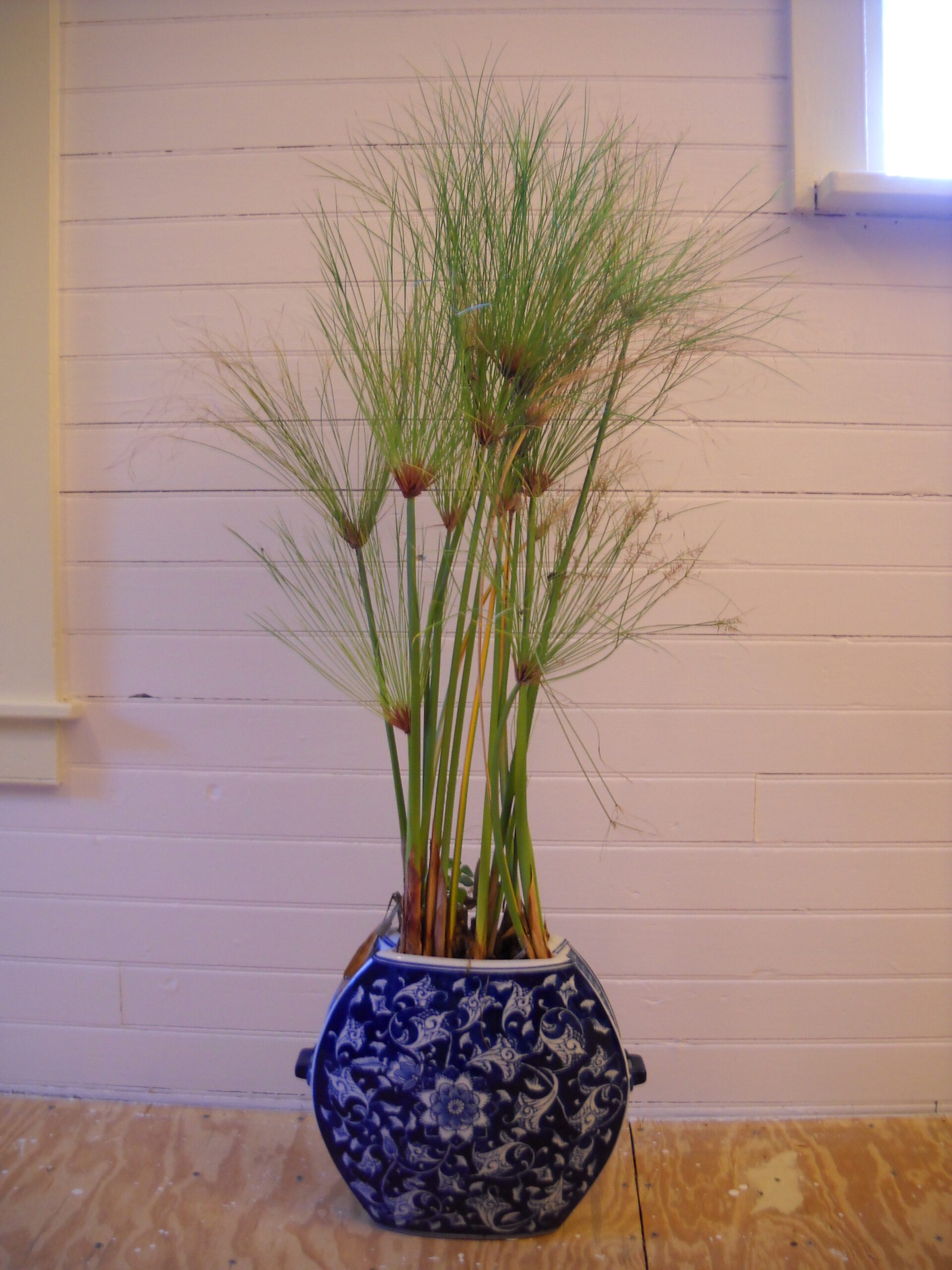 Plants in pots are good fillers, too. I have a large blue and white Chinese vase with papyrus growing in it. It has been wintering over in the house for several years, and is a big, handsome plant. I am not above moving it from the deck to the garden to fill in somewhere, or to add interest to a place with no blossoms.
