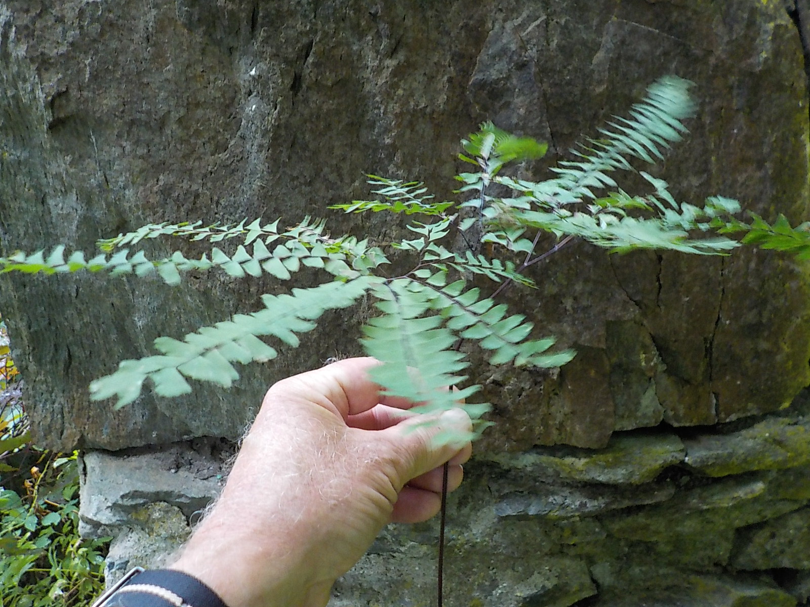 Maidenhair fern is commonly sold in nurseries, and I have rarely seen it in the wild. I have also grown it in a pot on our north-facing deck. In our garden, a plant (or three?) have created a clump that is eight feet by four feet in 20 years, so it is not a fast spreader.