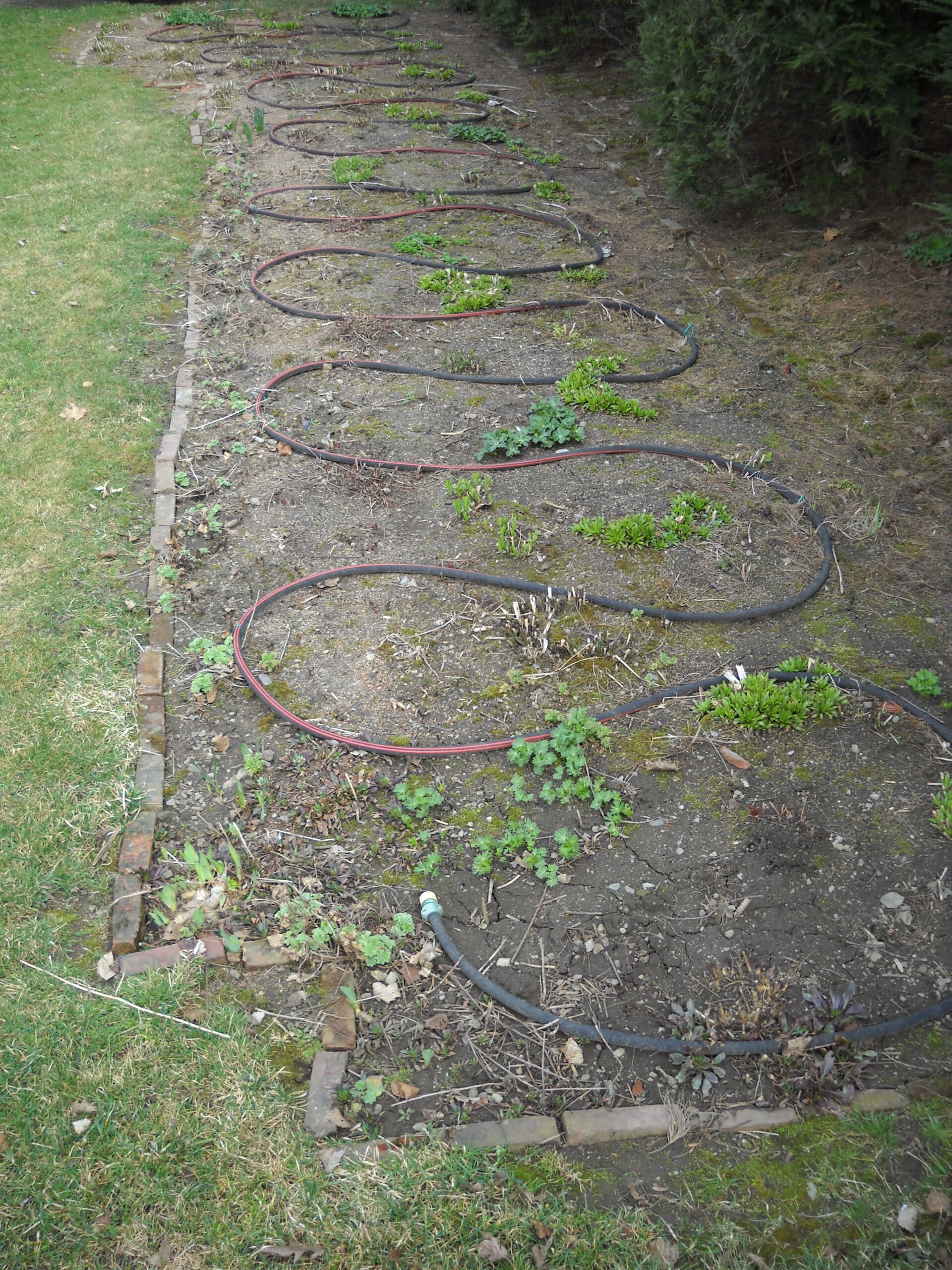 One nice thing about an emitter system is that you don’t end up watering the weeds: if you put an emitter at each tomato plant, for example, the space between plants is not watered the way it is with a soaker hose. And you can see (and replace) an emitter that gets clogged and does not deliver water. I can’t figure out why most garden centers on the East coast don’t sell these systems –every hardware store in California does.