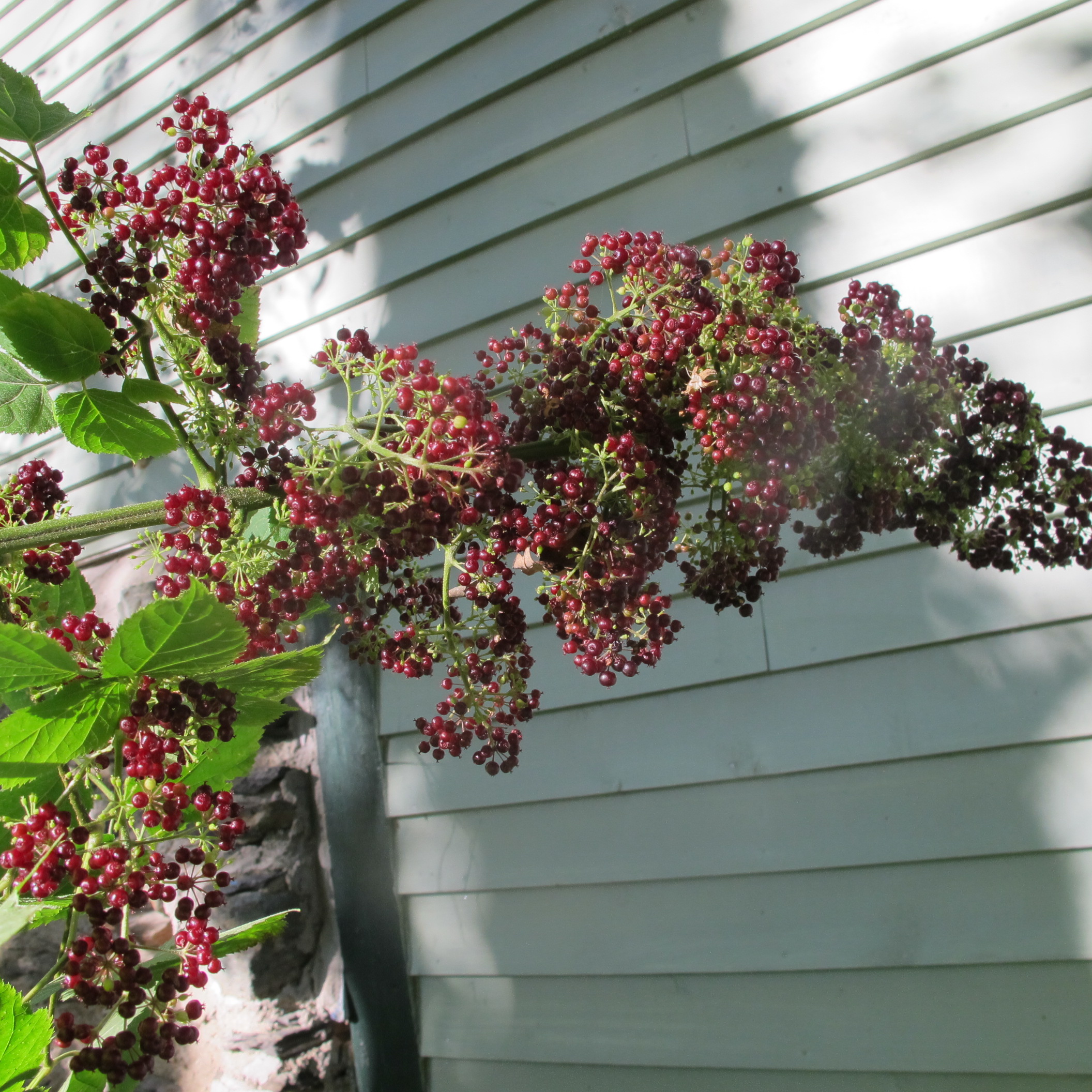 Another edible fruit described in the book is produced by American spikenard (Aralia racemosa). The authors note that spikenard gets big enough to serve as a handsome shrub, but since it dies back to the ground each fall, it won’t be damaged by snow falling off your roof if you plant it near the house. I grow it in part shade and it gets to be 6 feet tall and wide, and produces masses of berries each fall. The berries start off white, change to red, and end up a deep purple. I shall taste them this fall.